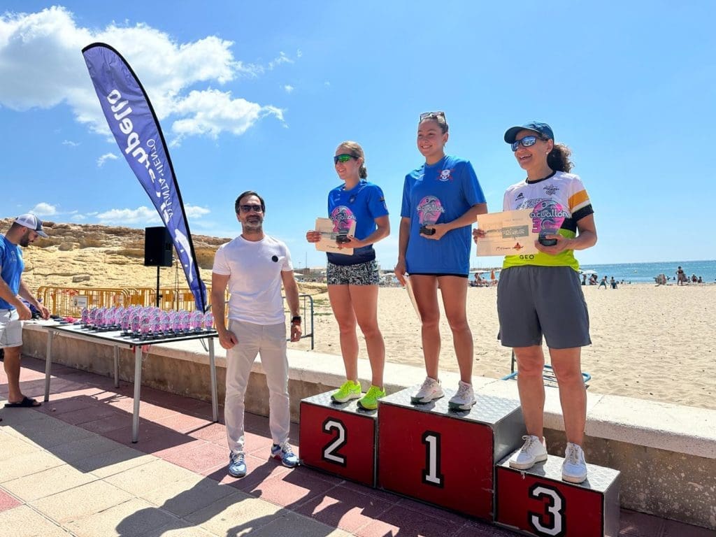 Durante la entrega de premios, en la que participó el concejal de Deportes Marcos Martínez, hubo un reconocimiento especial a la corredora María José Arco Quintana, que participó en el segmento de carrera a pie del acuatlón por parejas, junto a su compañera Pretty Suhanda (equipo Las Sirenas), tras superar una grave enfermedad.