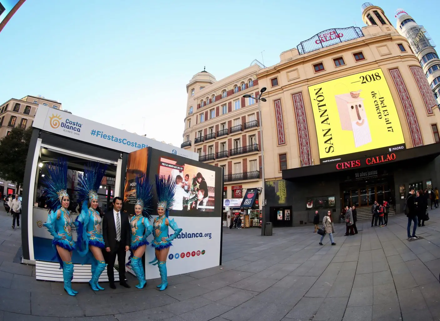 El vicepresidente y diputado de Promoción Turística, Eduardo Dolón, ha visitado el Punto de Información que el Patronato Costa Blanca ha habilitado estos días en la Plaza de Callao de Madrid, con motivo de su presencia en FITUR 2018.