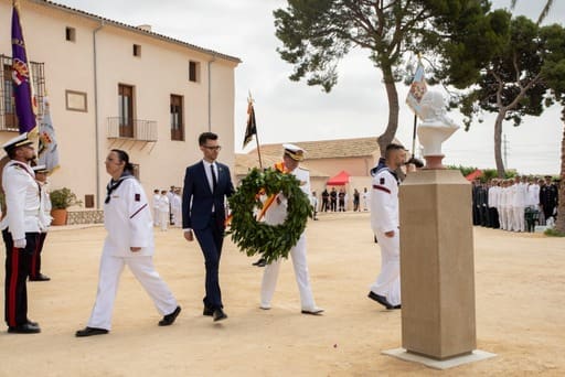 A las once de la mañana se ha iniciado el acto militar, protagonizado por una compañía de la Comandancia Naval de Cartagena, en el que se ha rendido homenaje al conocido como Sabio Español, en un evento con desfile de tropa e izado de bandera, en el que se ha descubierto un busto del insigne marino.