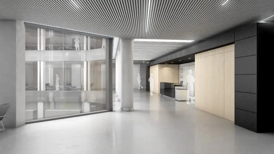 La distribución del edificio se ha planificado en dos plantas para albergar los distintos servicios asistenciales. Además, dispondrá de un patio interior para proporcionar iluminación natural a las salas de espera y las zonas de paso.