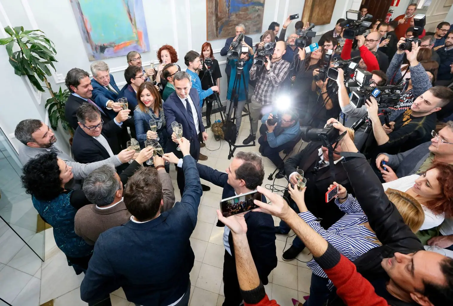 Todos los portavoces parlamentarios reconocieron la labor que realizan los profesionales del periodismo, no obstante, el diputado no adscrito, Fernando Sepulcre, en su mensaje pidió para los periodistas más ilusión y positivismo. El motivo de ese consejo tenía como escenario el adular las grandes cosas que se realizan desde la institución en la que trabaja, motivo que aprovechó César Sánchez para decirle a su compañero de partido, Carlos Castillo, que Sepulcre se estaba rifando ser portavoz de la Diputación. Los guiños y las bromas estuvieron presentes durante el choque del cristal de las copas de líquido dorado, además de recordar el trabajo que se desarrolla desde los ayuntamientos alicantinos, recordatorio que realizó la representante de EU, Raquel Pérez. El portavoz del grupo socialista, José Chulvi, hizo un juego de palabras en torno a la cooperación y el fondo de las cuestiones principales que todos los portavoces y en especial César Sánchez cogió el mensaje entre risas.
