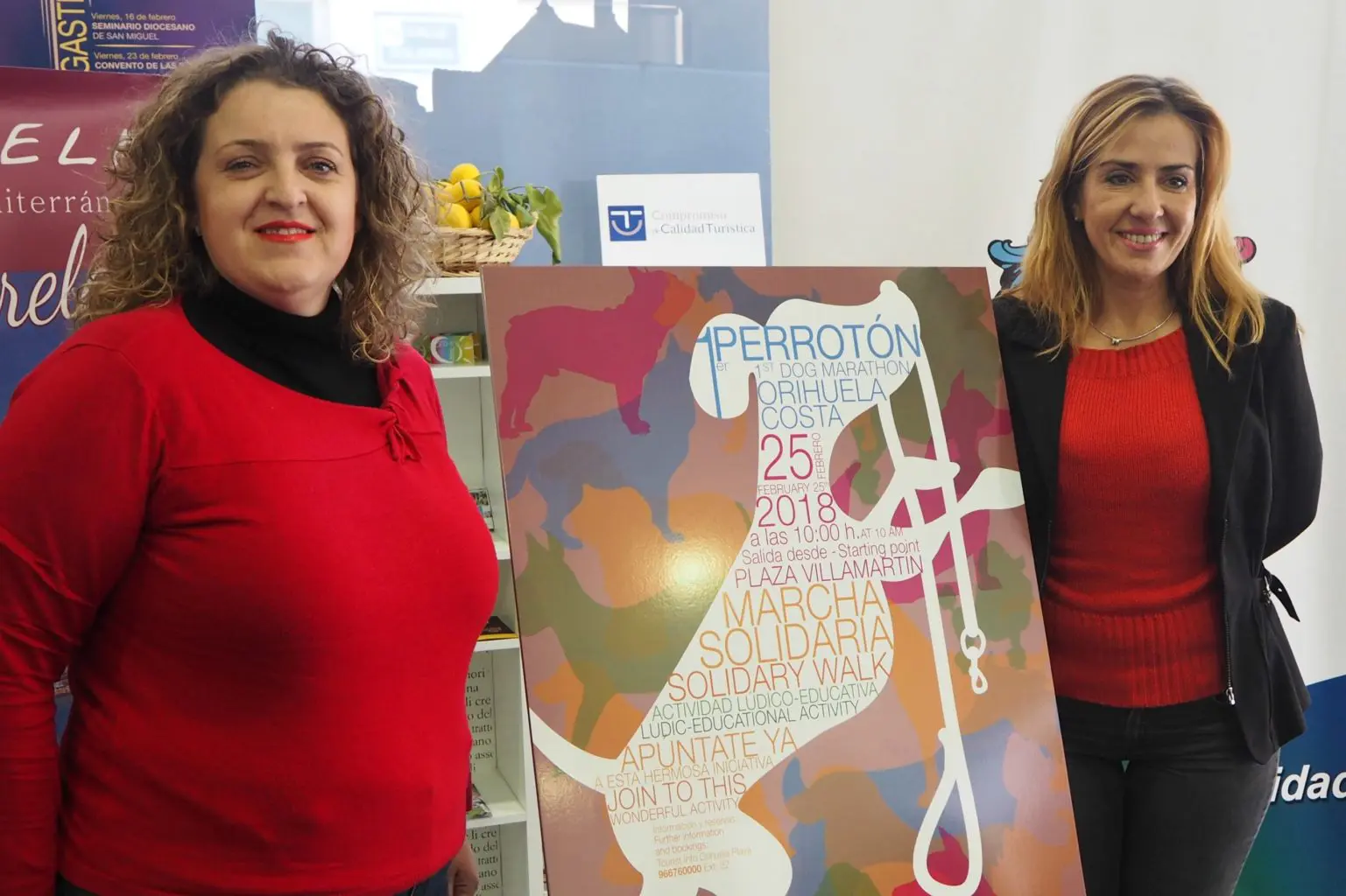 La concejal de Residentes Internacionales del Ayuntamiento de Orihuela, Sofía Álvarez, y la concejal de Sanidad, Noelia Grao, presentaron ayer martes el 1º Perrotón Orihuela Costa, una acción conjunta de ambas concejalías que se celebrará el próximo 25 de febrero a las 10.00 horas con salida desde la plaza Villamartín.