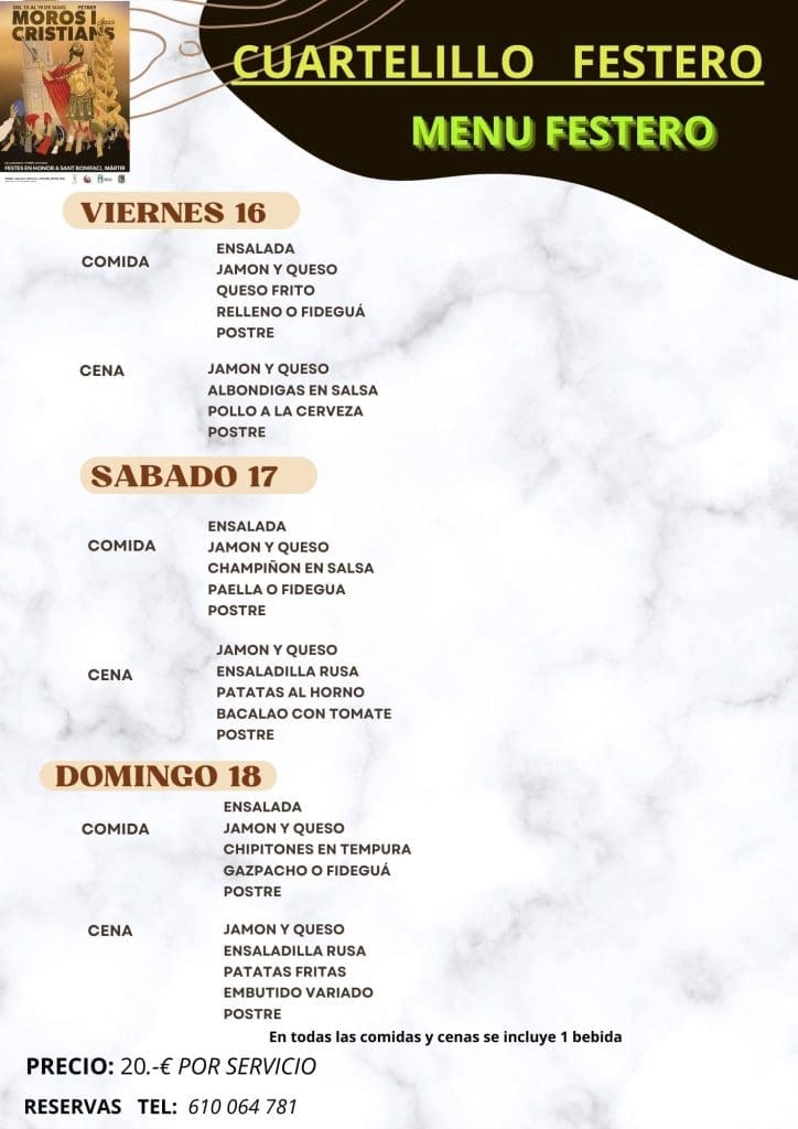 Menús festivos para disfrutar de los Moros y Cristianos de Petrer 2025
