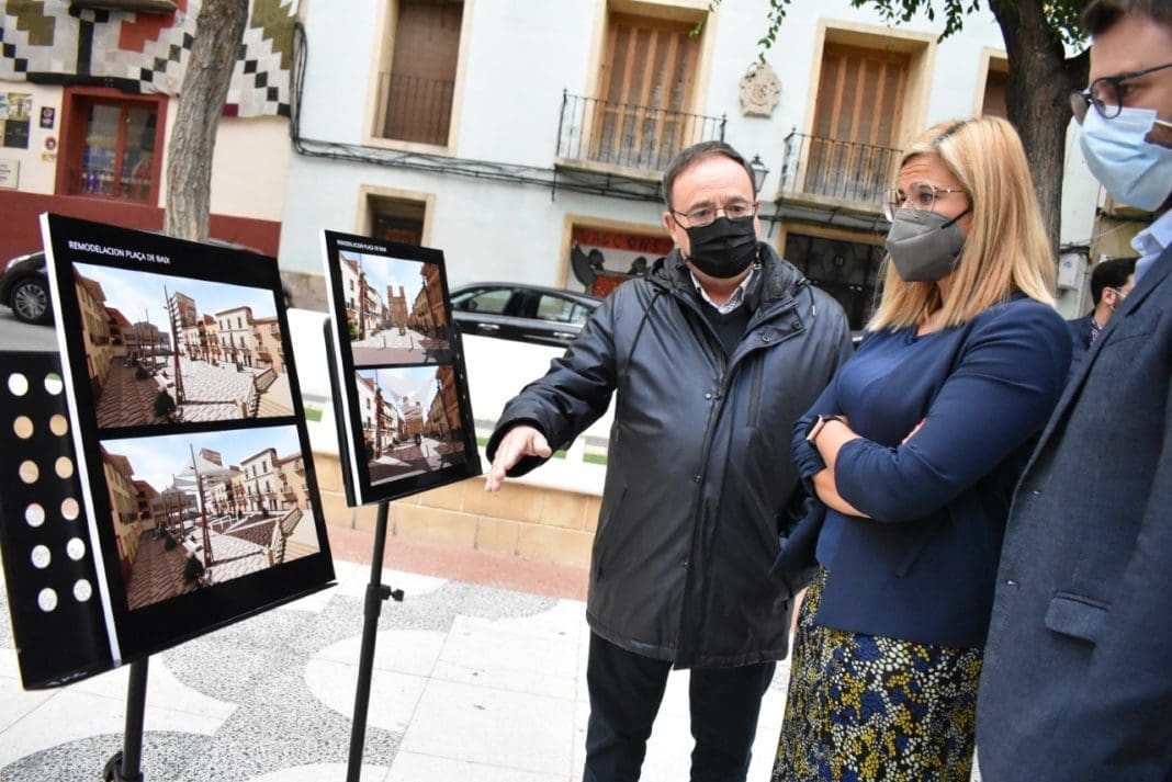 Esta mañana, la alcaldesa de Petrer, Irene Navarro, y el concejal de Urbanismo y Patrimonio, Fernando Portillo, acompañados por los técnicos de ambas concejalías, han presentado el proyecto de remodelación integral de la plaça de Baix, proyecto que cuenta con un presupuesto aproximado de 1,5 millones de euros y cuyas obras se prevé que comiencen después de las Fiestas de Moros y Cristianos de 2022.