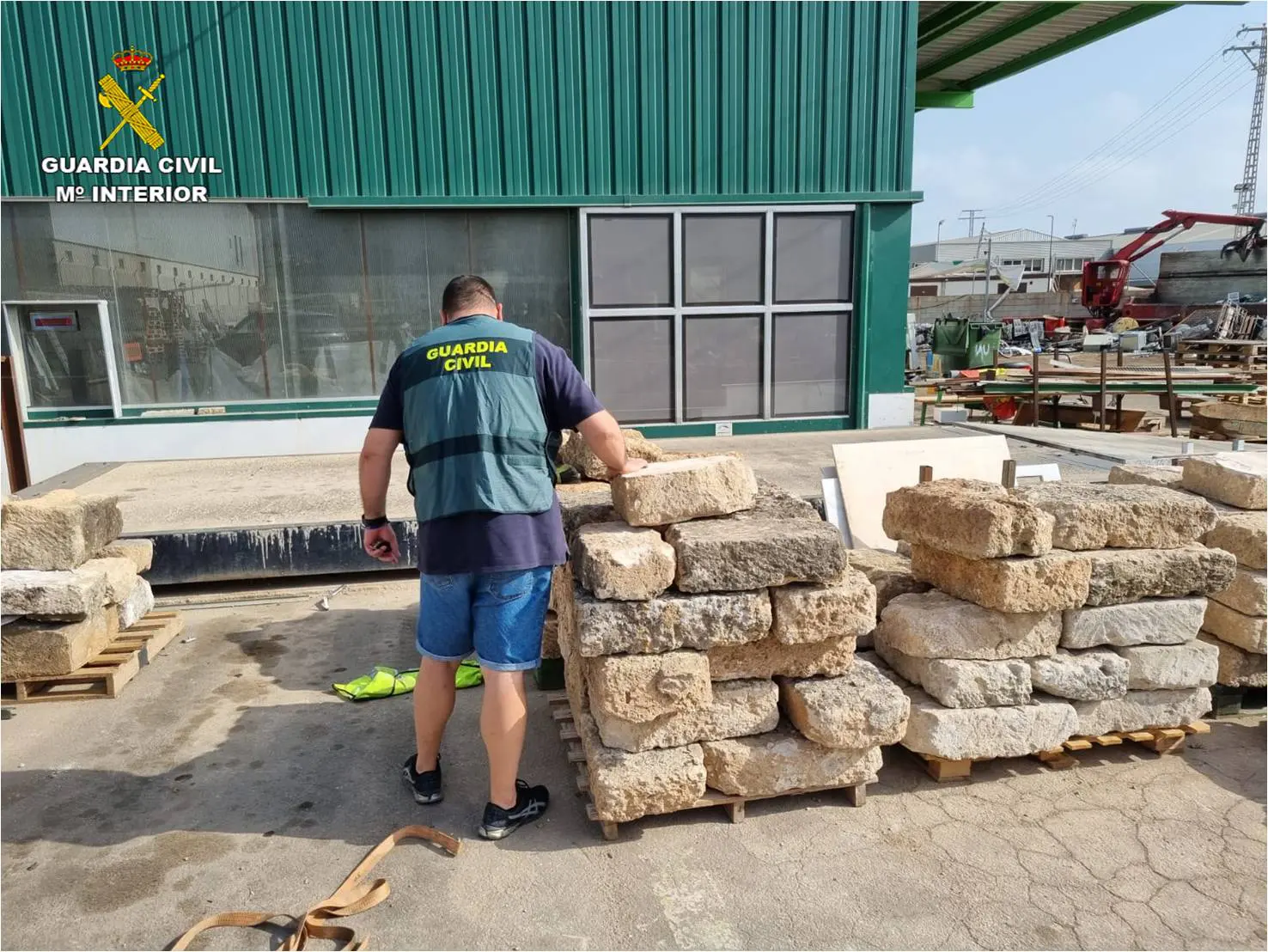 Las gestiones pertinentes les condujeron a la pista sobre un vehículo visto en una localidad vecina, cargado con diversas piezas de piedra. A esta información, se le sumó que durante la inspección a una chatarrería de Denia, se habían localizado dos palets con 50 piezas de este material de diferentes pesos y tamaños.