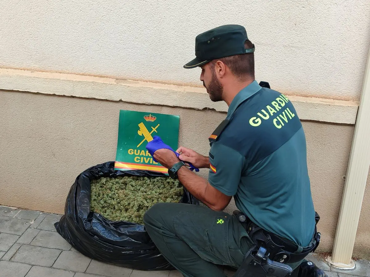 Los hechos ocurrieron cuando una patrulla del Puesto de Sax realizaba un control preventivo en una zona especialmente vigilada. En las inmediaciones había unas viviendas que despertaban las sospechas entre los agentes. Al identificar a los ocupantes de una furgoneta, los agentes detectaron un fuerte olor a marihuana procedente del interior del vehículo. Este detalle motivó la actuación.