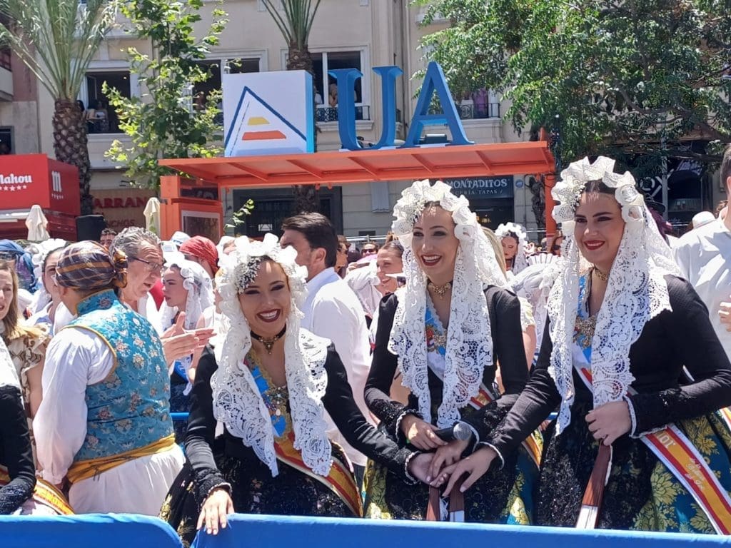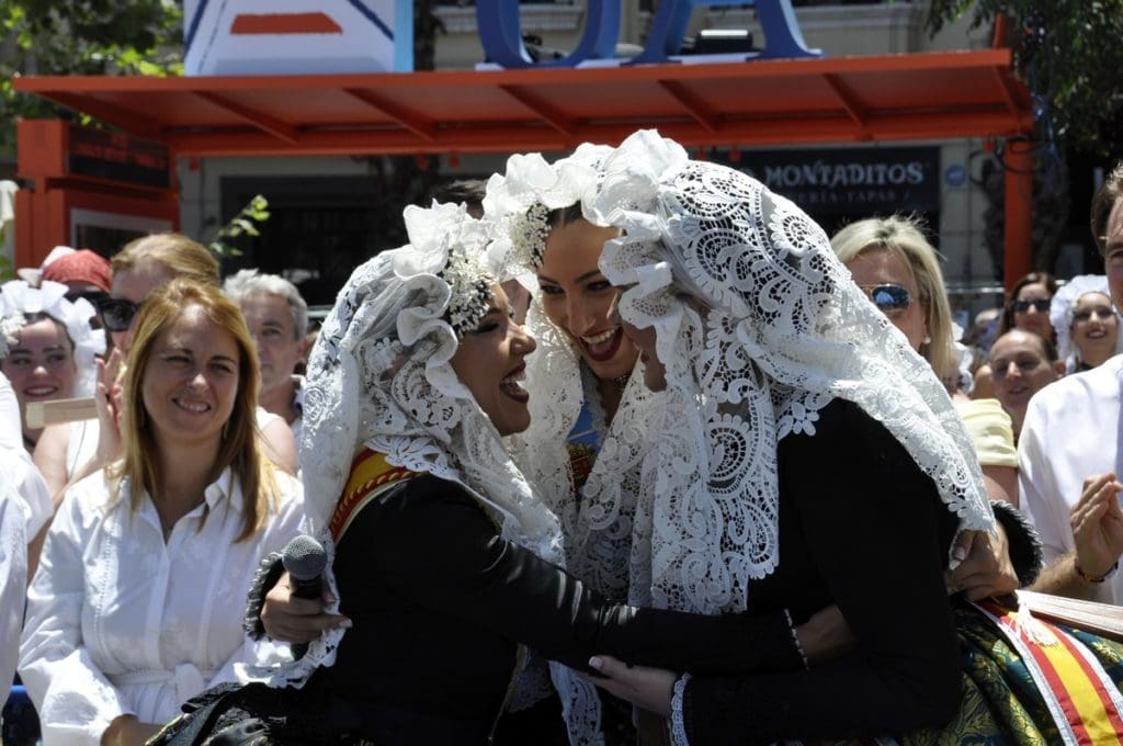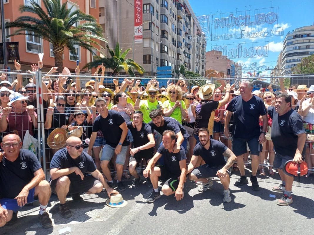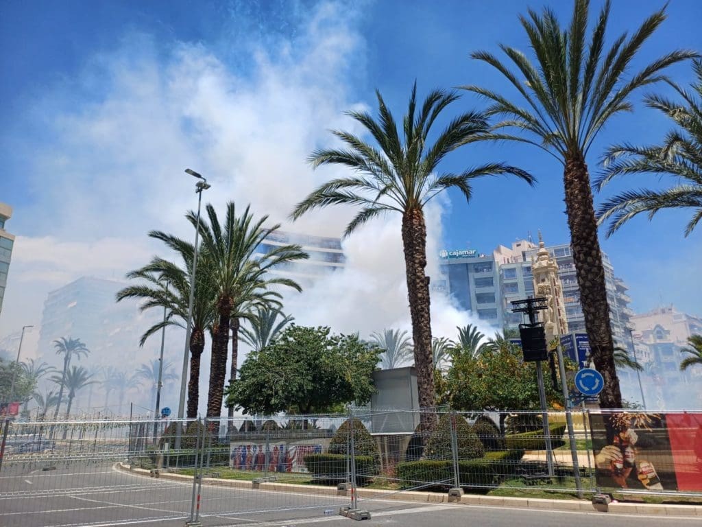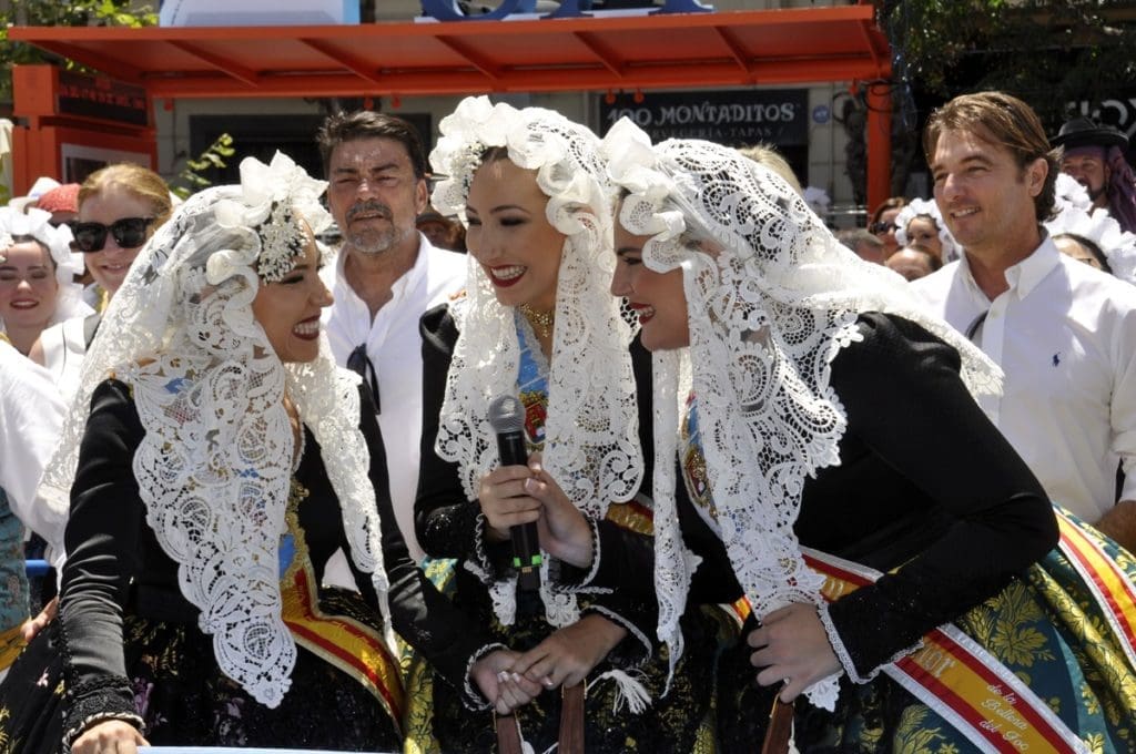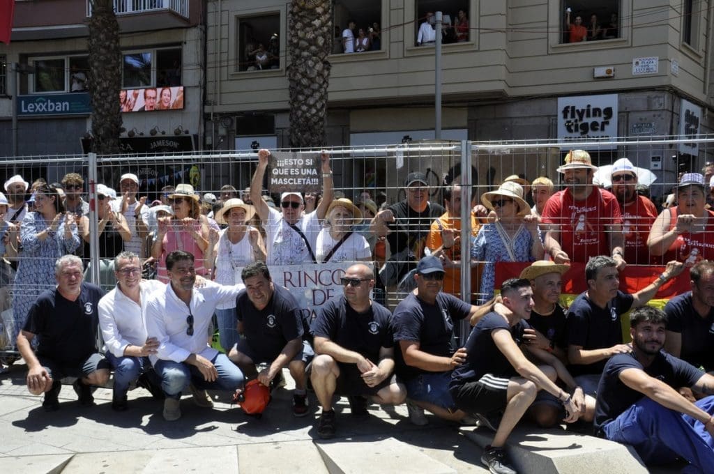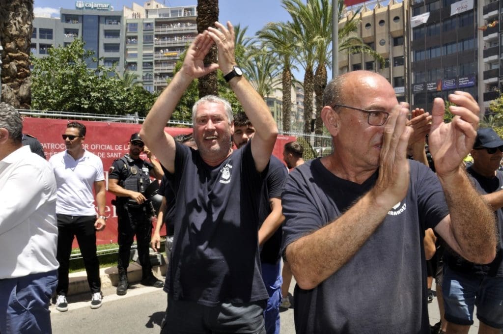 Los maestros pirotécnicos han saludado al respetable y han dado la vuelta a la Plaza de Luceros, donde han sido felicitados por la Bellea del Foc, por la Bellea infantil y por el alcalde de Alicante, Luis Barcala.