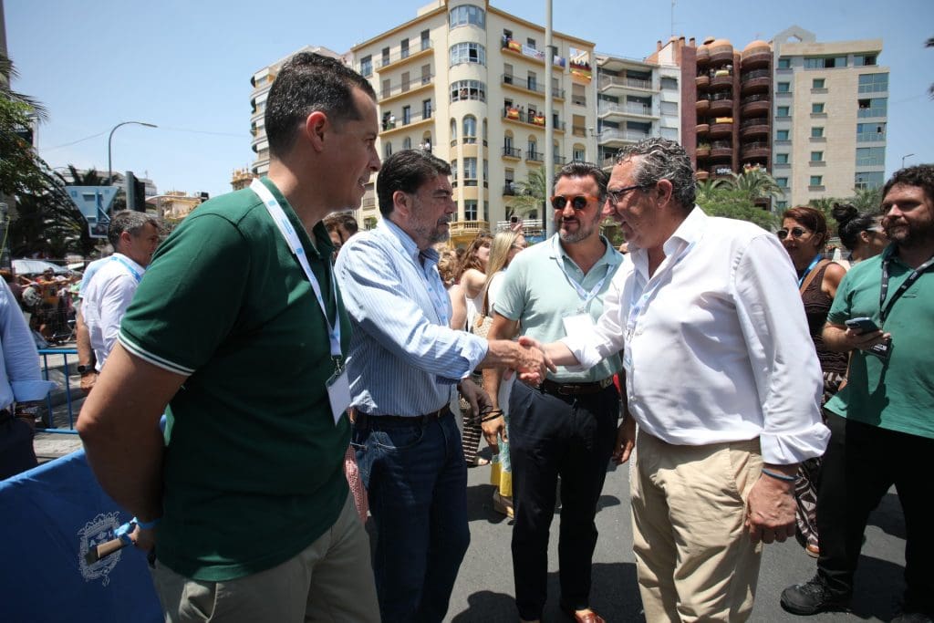 Como cada día de mascletaes en Luceros, la plaza es punto de encuentro para políticos de todo signo. Entre ellos, hoy ha acompañado a los festeros alicantinos el alcalde de Elche, Pablo Ruz. También la exvicepresidenta del Consell, y actual síndica adjunta de Compromís en Corts Valencianes, Aitana Mas. Junto a los anteriores, el secretario general del PSPV en la provincia de Alicante y alcalde de Elda, Rubén Alfaro, ha estado dialogando con el alcalde, Luis Barcala, momentos antes de comenzar la mascletà. Y, por supuesto, la corporación local y diputados provinciales y autonómicos.