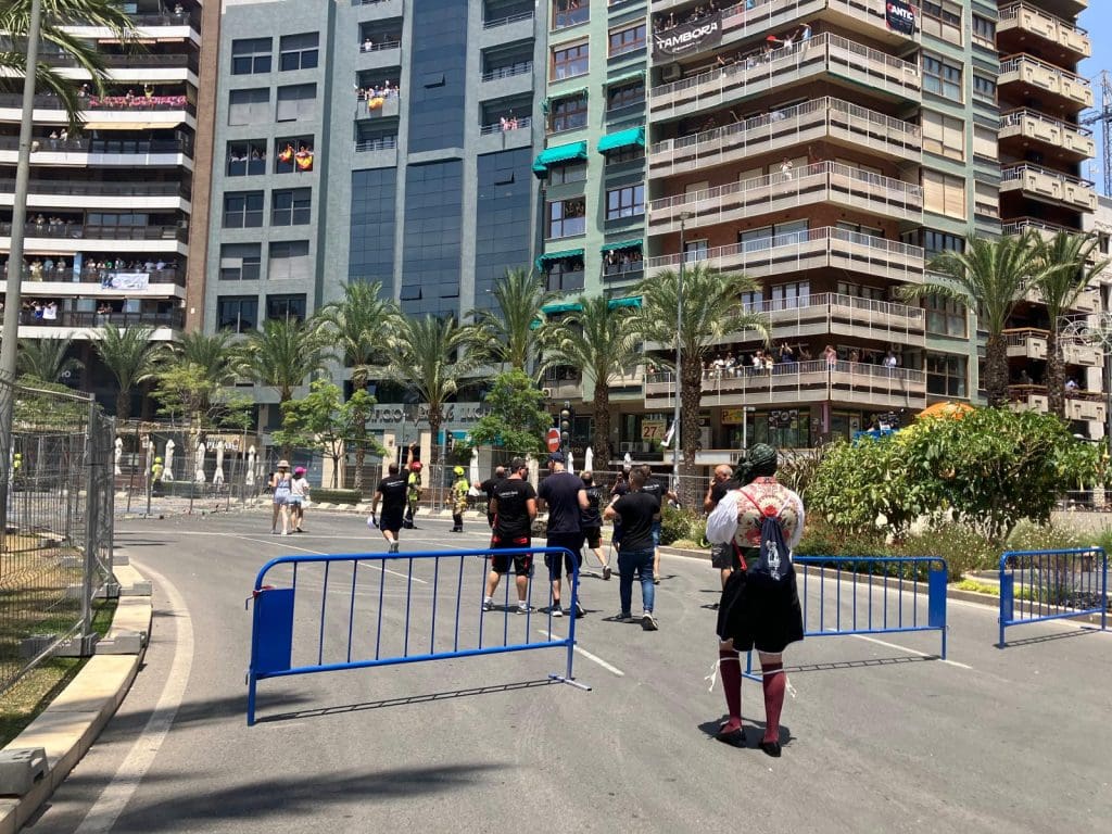 Entre los que se encaramaban al vallado, se encontraba Pascual, un valenciano afincado en Alicante, que no se pierde ni las de Fallas ni las de Luceros. También Sergio, con un grupo de amigos de la Foguera Séneca-Autobusos, que explicaba que les había costado un rato llegar a primera fila. No obstante, dijo que el fin de semana lo volverían a intentar. Recomendaba a quienes no hayan ido a Luceros todavía «sombrero» e «hidratación«. Junto a ellos, se encontraba Alberto y sus amigos, de Crevillent. Contaba a Diario de Alicante que su madre le ha llevado a mascletaes «desde los dos años» y hoy «he secuestrado a mis amigos» para seguir la tradición.
