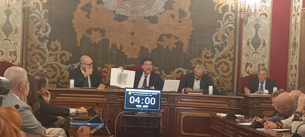 El alcalde de Alicante, Luis Barcala, ha anunciado este lunes, en el Debate sobre el Estado de la Ciudad, un plan de choque de limpieza y ha detallado las actuaciones incluidas en el gran proyecto ‘Alicante Nuevo Centro’, un nuevo eje cultural y de ocio entre Las Cigarreras y la Plaza de Toros que incluirá un nuevo museo, la reurbanización de la Plaza de España y la peatonalización de la calle San Vicente. Además, ha resaltado la apuesta de Alicante por las instalaciones deportivas de primer orden, con el impulso de dos nuevos ejes en Vía Parque y avenida de las Naciones-Albufereta, y por las políticas sociales, con la puesta en marcha, en los próximos meses, de una Oficina de Apoyo al Cuidador, un nuevo teléfono de atención social y una red de detección temprana de la soledad no deseada en mayores.