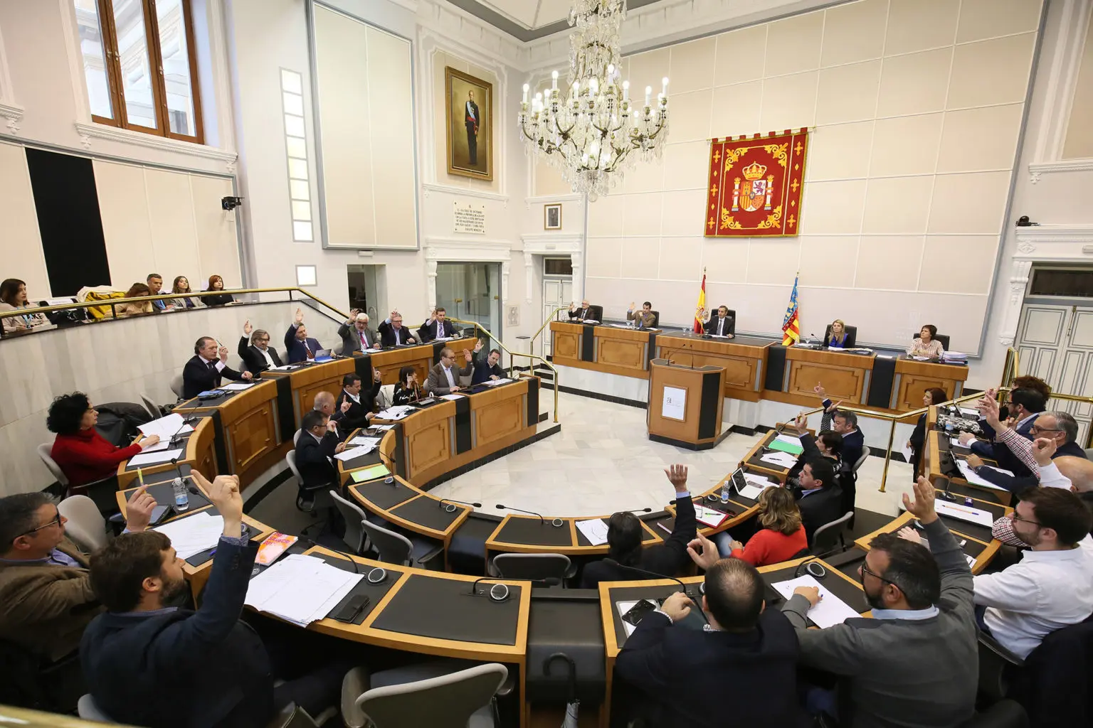 La Diputación de Alicante ha aprobado en un pleno extraordinario, con el respaldo del Grupo Popular, PSPV-PSOE y Compromís, el Plan de Obras y Servicios de la institución para 2018, un programa consensuado previamente por las distintas formaciones y que contempla una inversión de 18 millones de euros en un total de 54 proyectos.