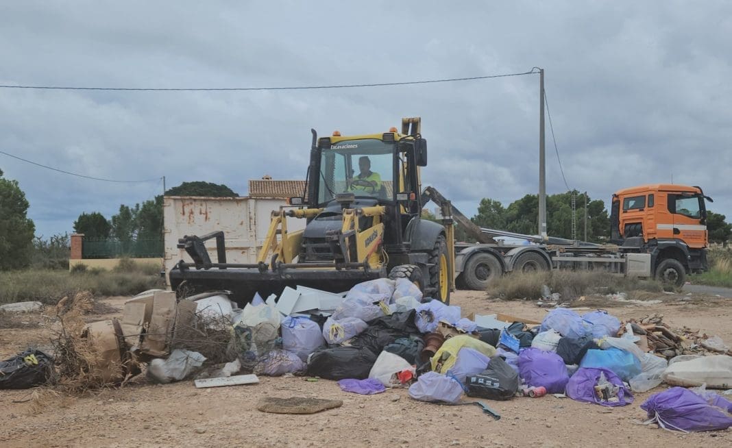 Los trabajos, que empezaron ayer, han permitido eliminar en la primera jornada de intervención todo tipo de residuos depositados irregularmente en 14 espacios situados en diversas partidas y barrios del municipio de los que se extrajeron 53 toneladas de vertidos.