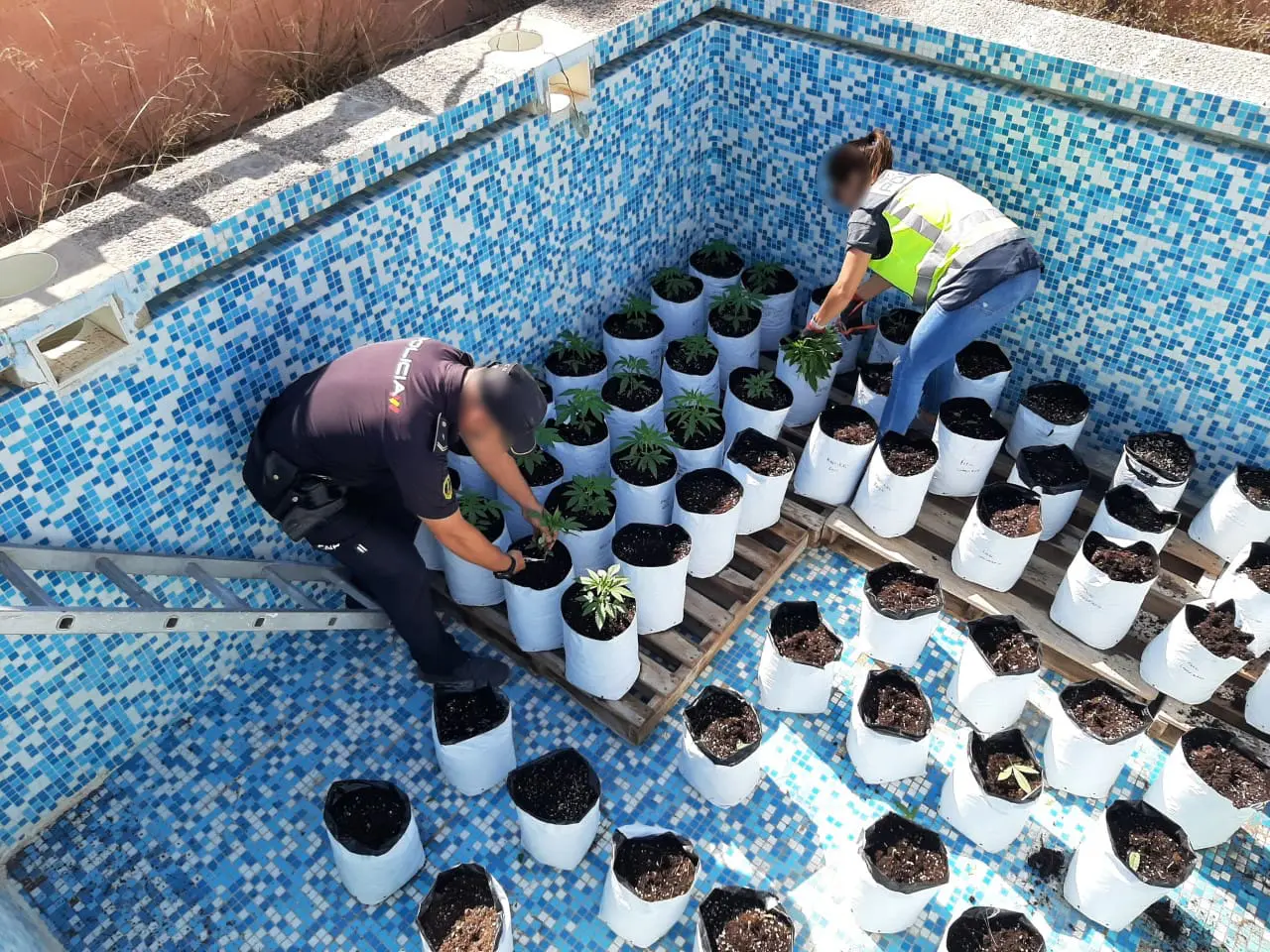 Fruto de la investigación se localizó otra vivienda en la localidad de Mutxamel en la que se encontró un laboratorio para el procesado de la marihuana donde se separaban las hojas y las flores para extraer el polen y el aceite con la ayuda de dos centrifugadoras eléctricas, en el lugar también se hallaron más de 100 kilos de marihuana, 10 plantas de gran tamaño en estado de floración y abundante utillaje tanto para el cultivo como para el procesado de las plantas.