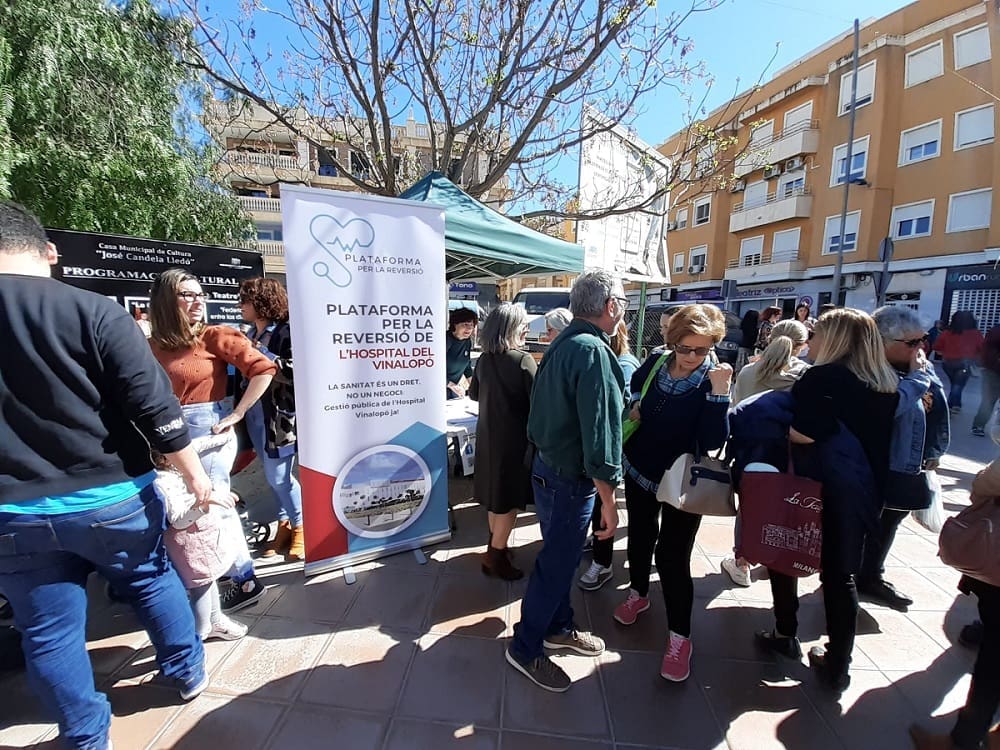 La Plataforma por la reversión del Vinalopó ha estado esta mañana a las puertas del mercadillo de Crevillent recogiendo firmas de forma física para exigir a la Generalitat Valenciana la gestión pública del único departamento de Salud privatizado de todo el territorio valenciano.
