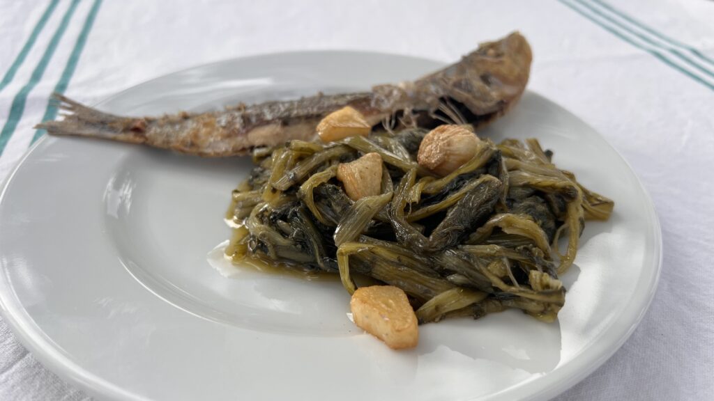 La riqueza agrícola de la comarca también se refleja en otras recetas muy vinculadas al territorio, como las camarrojas fritas con sardinas, un plato que incorpora esta hierba silvestre propia de zonas húmedas y estrechamente relacionada con el paisaje local.