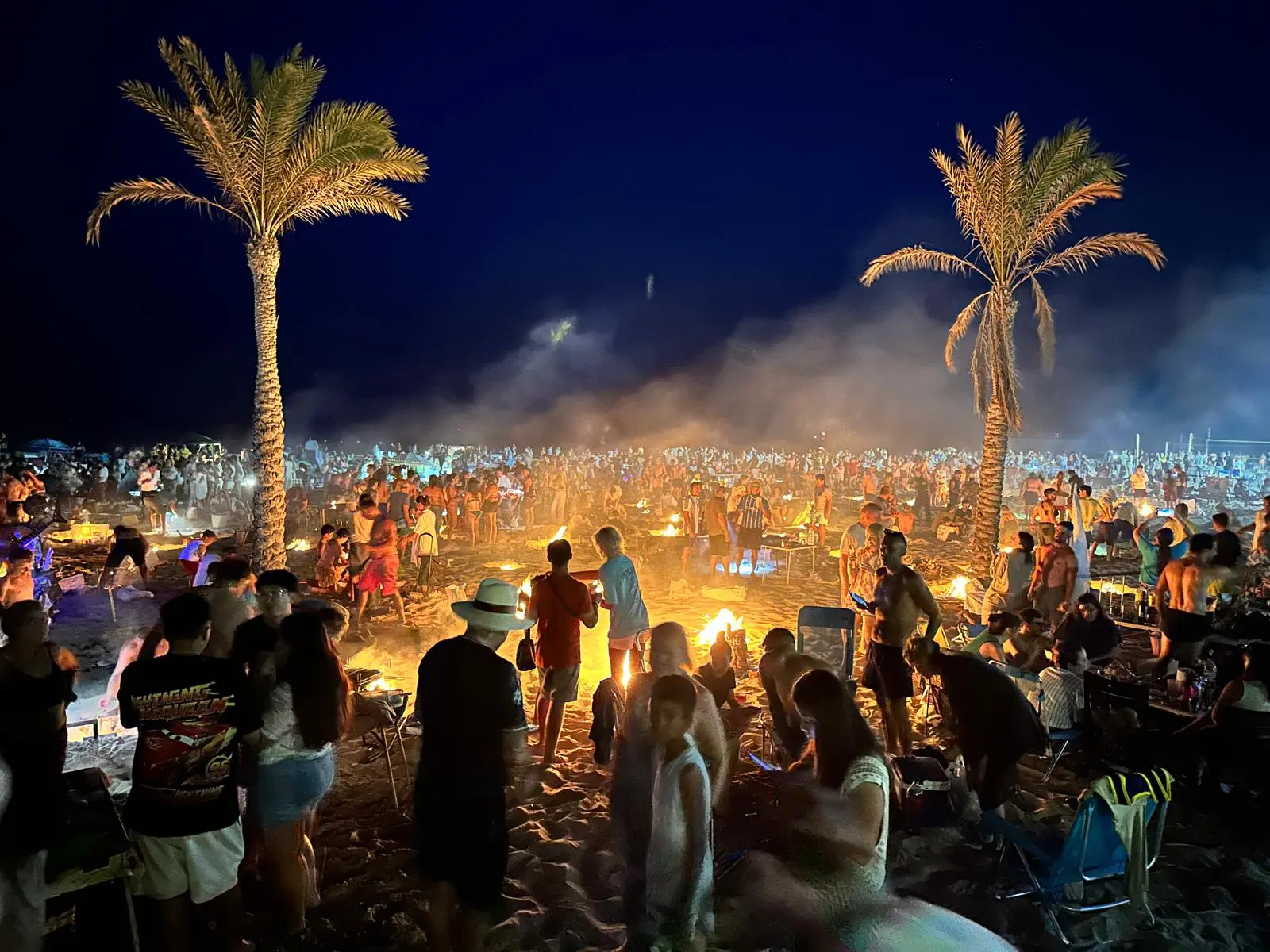 Los arenales campelleros se convirtieron en un amplísimo espacio de convivencia y fiesta para disfrutar de la noche. Familias, grupo de jóvenes, colectivos de residentes extranjeros perfectamente organizados, románticas parejas o seres solitarios… todos y todas atraídos por el influjo de la mar.