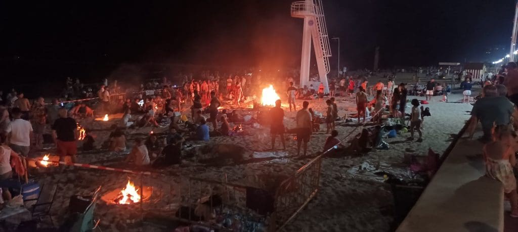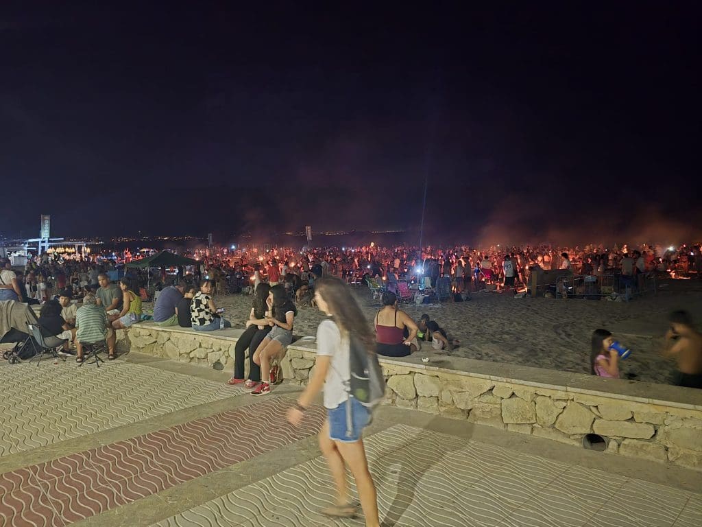 Las dos playas, y sus respectivos paseos marítimos, eran un hervidero de gente desde media tarde, cuando familias enteras tomaban posiciones en alguna de las 12 áreas acotadas para el encendido de hogueras.
