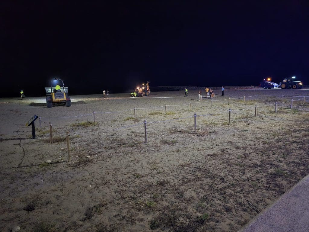 El dispositivo de seguridad fue amplio, con participación de efectivos de la Policía Local, Guardia Civil y Protección Civil, además de ambulancias medicalizadas y equipos sanitarios para atender cualquier emergencia. Profesionales que apenas han dormido esta noche, pues el operativo se mantuvo hasta que los operarios de la empresa FCC, después de horas de intenso trabajo a pie y a bordo de máquinas, han dejado a las 8 de la mañana las playas en perfecto estado de revista para recibir a los bañistas.