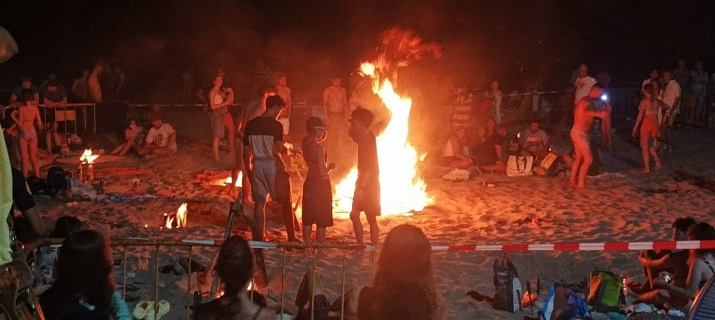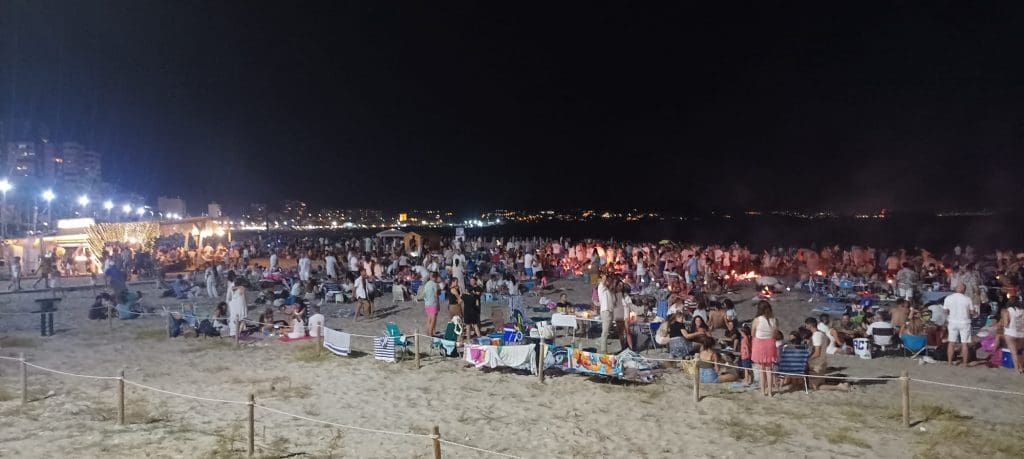 La “Nit de Sant Joan” es una llamada irresistible para los campelleros y campelleras, pero también para vecinos de toda la comarca, la capital Alicante y otros localizados al norte de la provincia. Resultado: decenas de miles de personas cumpliendo los rituales de encender fogatas, bailar alrededor de las hogueras, saltar sobre ellas y, por último, adentrarse en la orilla para mojarse y contar las tradicionales siete olas, llegada la medianoche.