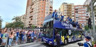 La Plaza de los Luceros se tiñe de blanquiazul por el ascenso del Hércules 14 años después