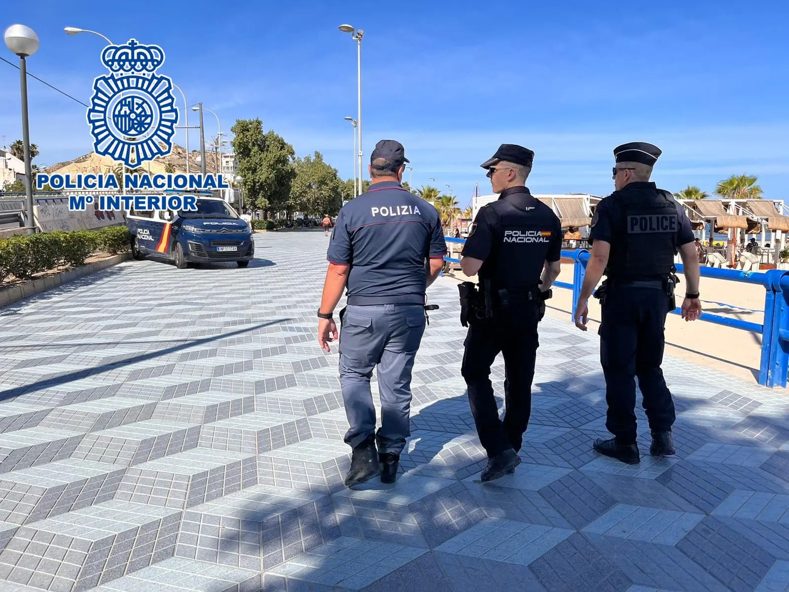Agentes de la Policía Nacional de España, de la Policía Italiana y Policía Francesa, en el marco del proyecto “Comisarías Europeas”, comenzaron a principios del mes de junio a patrullar juntos por las calles de Alicante para reforzar la atención a los turistas y garantizar una mayor seguridad a los ciudadanos extranjeros.
