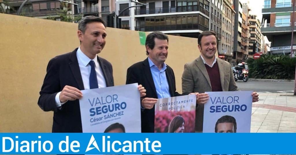 En un acto en la capital alicantina, tanto el presidente provincial José Císcar como el candidato al congreso y senado César Sánchez y Pablo realizaron la clásica, pero ya simbólica pegada de carteles en las inmediaciones de su sede donde los miembros de la formación azul defendían la unidad de España como valor seguro con ansias de mantener la hegemonía en la provincia.
