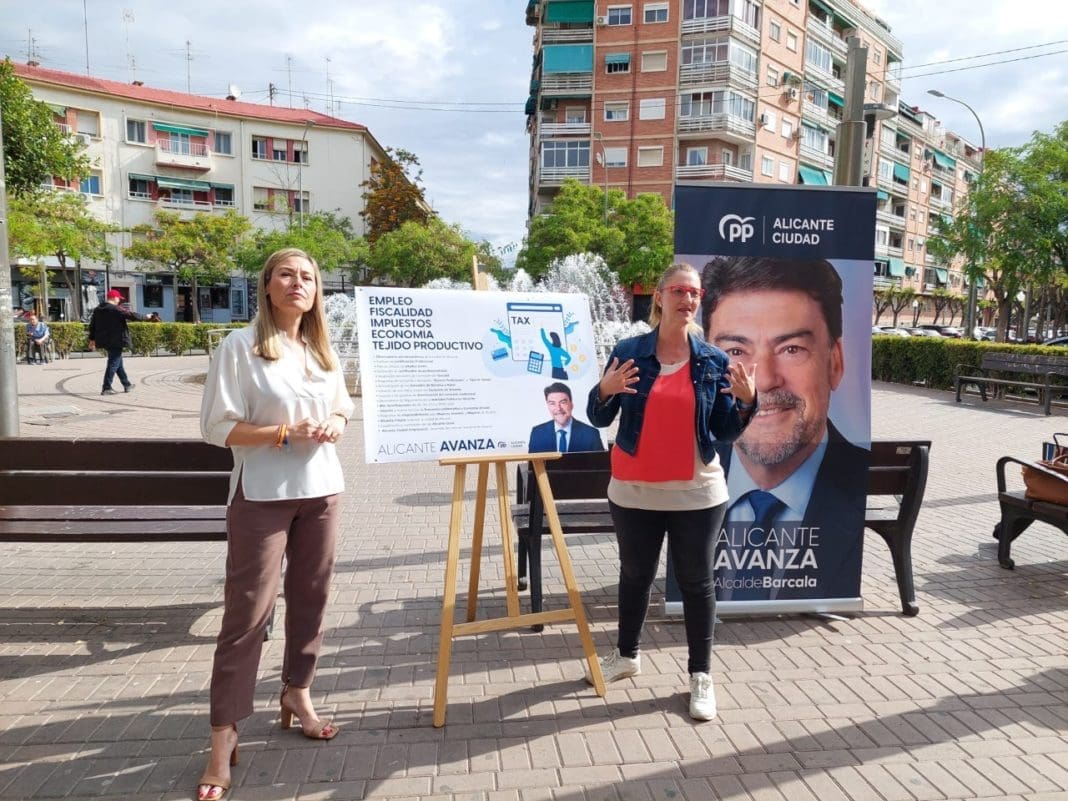 Las candidatas del Partido Popular, Mari Carmen de España y Lidia López, han desgranado las líneas principales del programa electoral en materia de Fiscalidad, Empleo y Sectores Productivos que contempla seguir con la bajada de impuestos a través de nuevas bonificaciones en el IBI, IAE, ICIO y IVTM, el desarrollo urbano del cinturón industrial con el modelo ‘Alicante.Ciudad Empresarial’ para atraer empresas y general empleo, junto a la estrategia digital Alicante Futura, además de mantener las políticas de incentivo al consumo con los Bonos Comercio y Gastronómicos y las acciones de dinamización junto a las asociaciones del sector y los barrios de la ciudad.