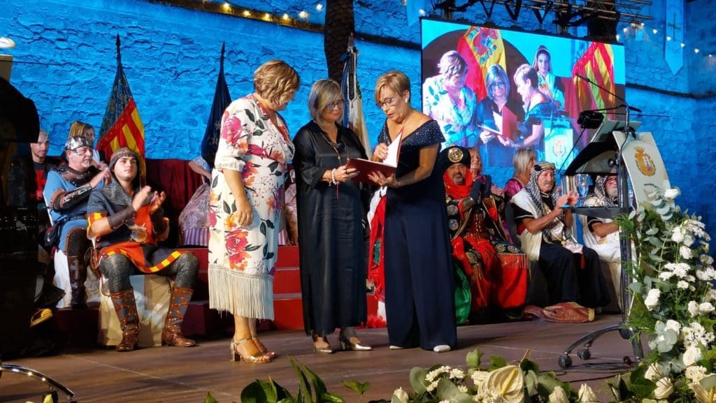 La pregonera fue sorprendida cuando, sin esperarlo, acabando su discurso aparecieron varias filadas de todas las comparsas, acompañadas por la Colla El Freu, la Banda Unió Musical y la Banda Mare de Deu de Loreto en el escenario, desfilando a los compases de una marcha mora, en homenaje a su presidenta en su 25 aniversario como responsable de Moros y Cristianos.
