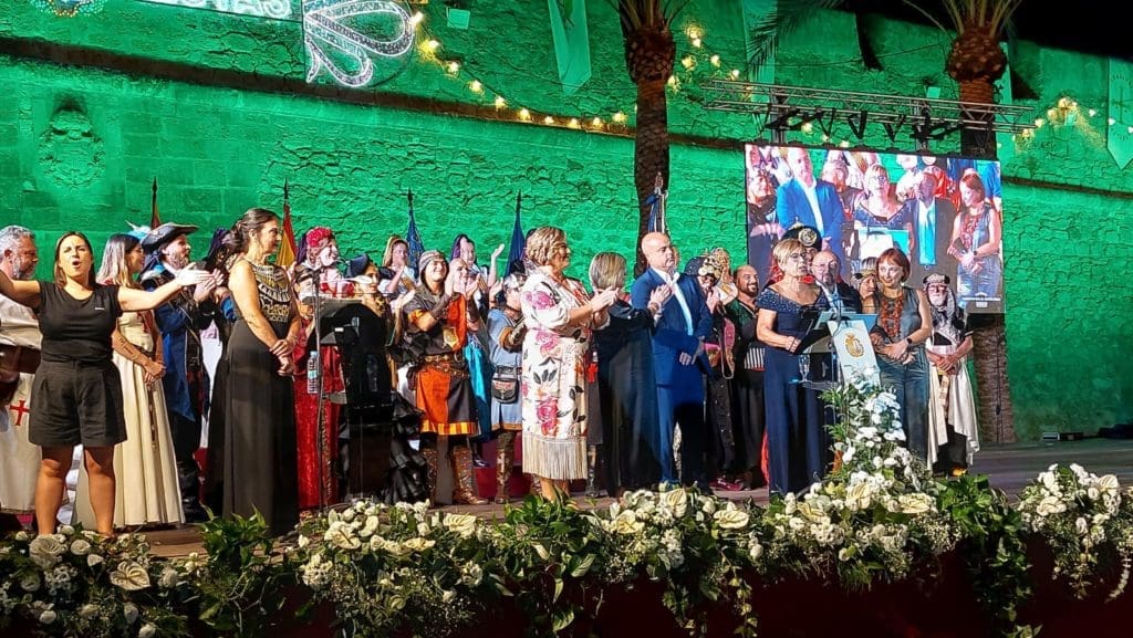 La plaza de la Glorieta presentaba un aspecto espectacular con el despliegue de más de 1.300 sillas frente al escenario dispuesto a los pies de la muralla del Castillo-Fortaleza, imposible encontrar un fondo más bonito para los santapoleros.