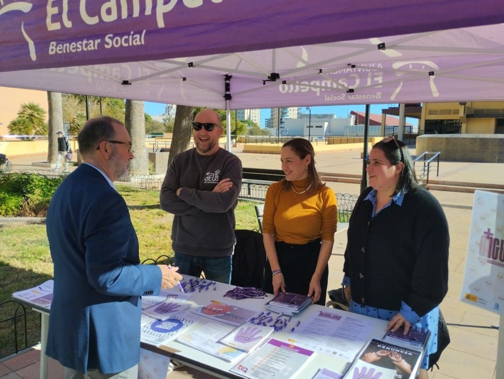 La carpa, muy visitada, ha servido para divulgar material de información y de recursos asistenciales y productos de merchandising con perspectiva de genero, y entre los informadores estaban el alcalde Juanjo Berenguer y la concejala de Mujer e Igualdad, Maricarmen Alemañ.