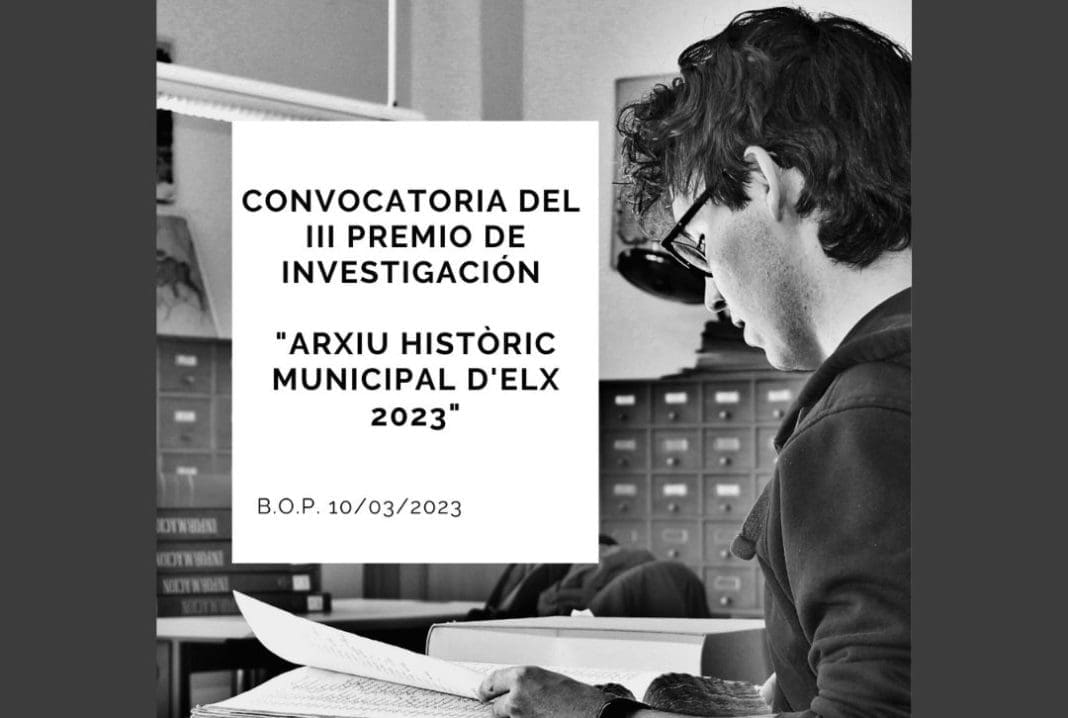 La Concejalía de Cultura y el Archivo Histórico Municipal de Elche (AHME) han convocado la tercera edición del Premio de Investigación Arxiu Històric Municipal d’Elx.