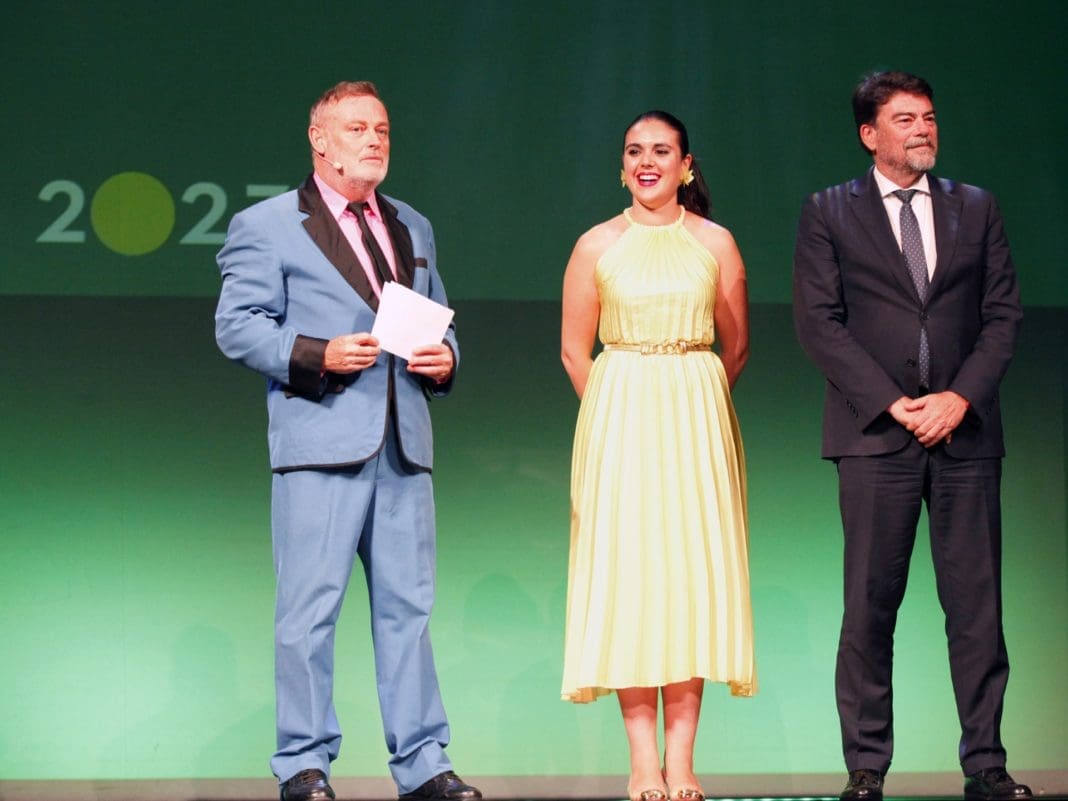 El alcalde Luis Barcala, junto con la concejala de Cultura, Nayma Beldjilali, ha entregado este lunes el galardón de ‘Mejor Cortometraje’ de ‘Gastrocinema 2023’ a María José Martínez Palazón, protagonista de ‘Migas’, durante la Gala de Clausura, que se ha celebrado en el Teatro Principal.