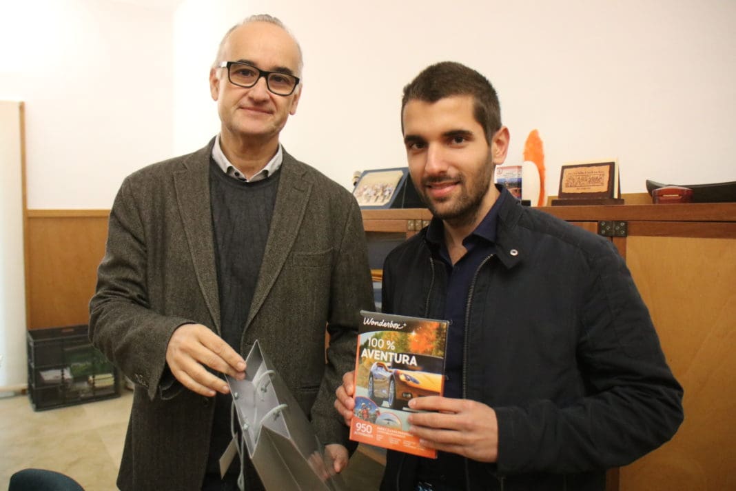 Este lunes se ha hecho entrega del premio del segundo reto «Muévete por la UA» que promueve el vicerrectorado de Campus y Tecnología desde la oficina Ecocampus. Axel Vázquez Hernández ha recibido de manos del vicerrector, Rafael Muñoz, un Pack Wonderbox 100% Aventura, como ganador de este segundo reto del programa de la UA.