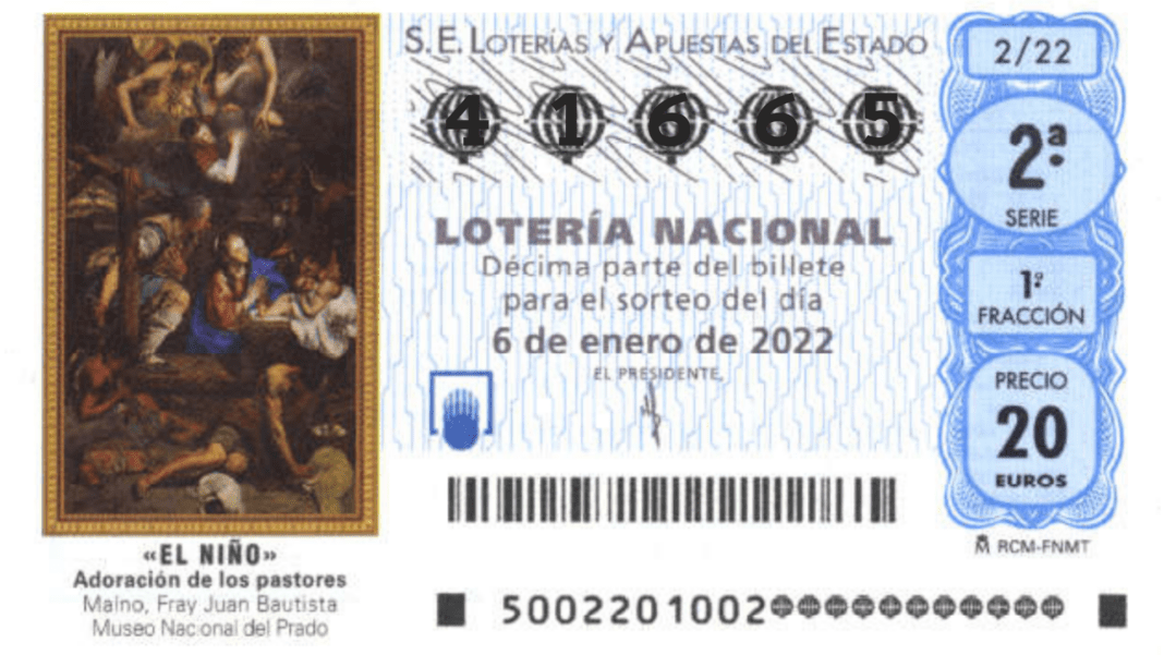 El primer premio ha sido para el número 41665 con 200.000 € el décimo y 2 millones a la serie. Este primer premio ha sido repartido en la Rioja íntegramente, en la administración número 6 de Logroño.