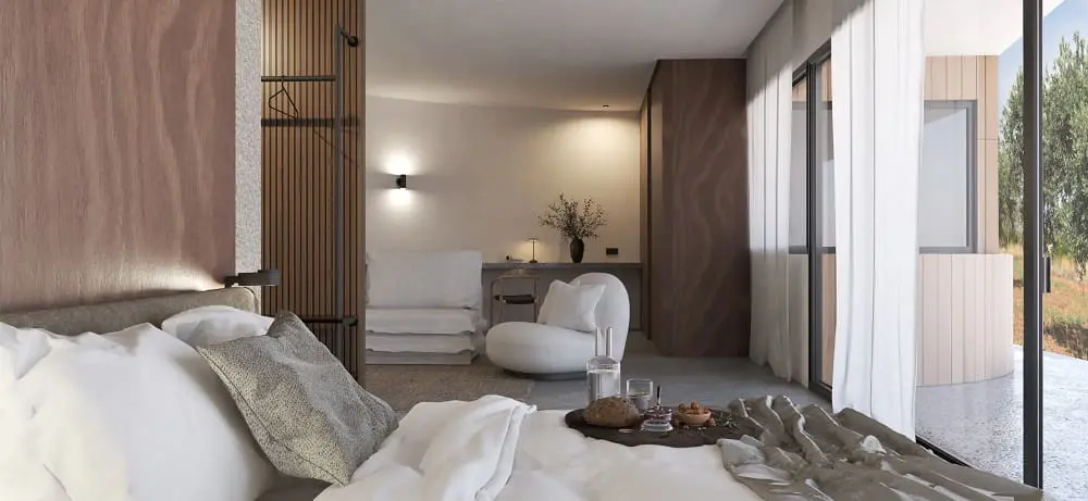El proyecto de hotel incluye 21 suites independientes de diseño arquitectónico exclusivo y totalmente integradas a los pies de la sierra de Onil. Cada una de ellas contará con 32 metros cuadrados, aire acondicionado, grandes ventanales con vistas a las montañas, televisión y baño privado. Además, cuatro de ellas serán de 40 metros cuadrados y estarán dotadas de mayores servicios como por ejemplo terraza y piscina privada.
