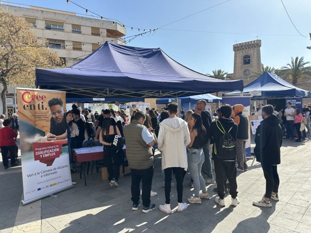 Es la primera vez que se organiza en Santa Pola un evento de este tipo y el resultado no puede ser más exitoso. Durante toda la mañana grupos de jóvenes estudiantes de los institutos de la villa, más de 500 en total, han recorrido la veintena de stands montados en la Glorieta por la concejalía de Juventud para conocer de primera mano las múltiples posibilidades de formación y empleo que les pueden abrir un futuro profesional.
