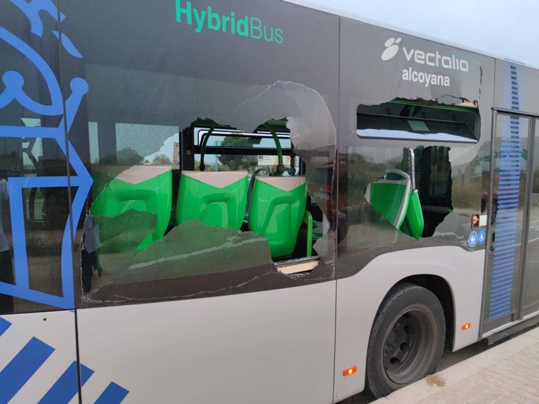 La primera jornada de la huelga de autobuses de La Alcoyana ha transcurrido con algunas incidencias desde primeras horas de este martes 21 de junio. Uno de los momentos de mayor tensión la ha protagonizado un autobús de la línea 23 (Alicante-Mutxamel) que ha sido apedreado ocasionando rotura de lunas al incorporarse a la cabecera, según los empleados por «algún vándalo cabreado por la huelga». Desde el Comité de Empresa informan que durante la mañana «también se ha retirado algún autobús por problemas de mantenimiento, de la emisora y de líquido de limpiaparabrisas y un conductor de la C-6, que la empresa le había puesto servicio sin respetar las horas de descanso mínimo entre jornadas».