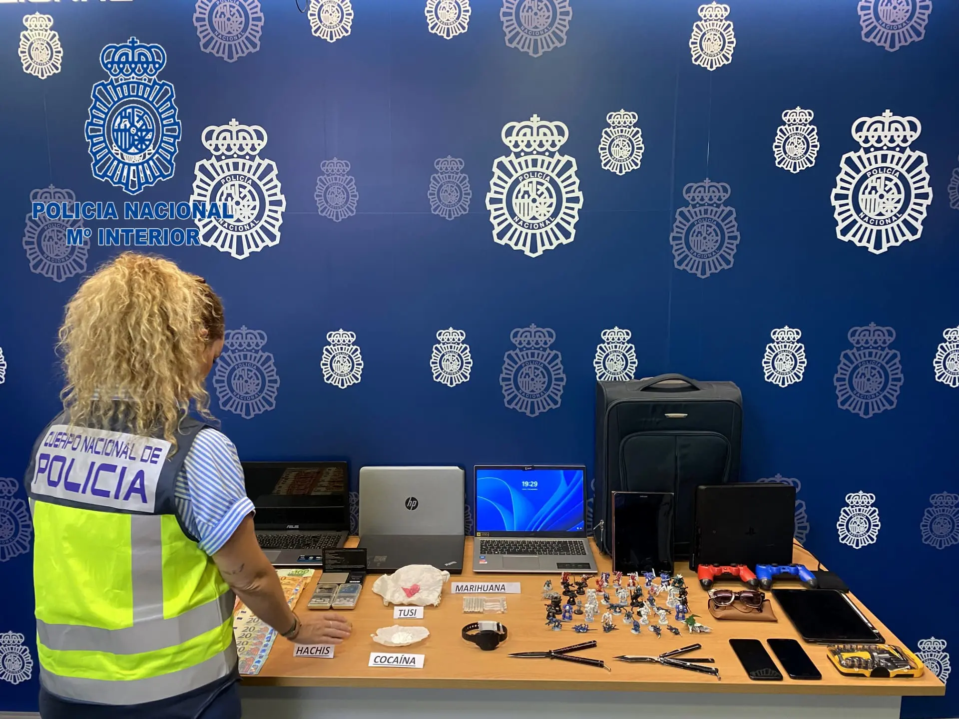 Tras su detención, se llevó a cabo un registro domiciliario en su vivienda de Alicante bajo autorización judicial, encontrándose allí gran parte de los efectos sustraídos en ambas viviendas, además de diversa cantidad de sustancias estupefacientes, tales como 8´64 gramos de cocaína, 8´32 gramos de droga tutsi y 87´9 gramos de hachís, junto con varios útiles para su distribución y venta, además de 870 euros en efectivo, deteniéndose a dos mujeres por su presunta participación en los hechos, imputándoseles un delito de tráfico de drogas además de los delitos de robo con fuerza en las cosas y hurto investigados.