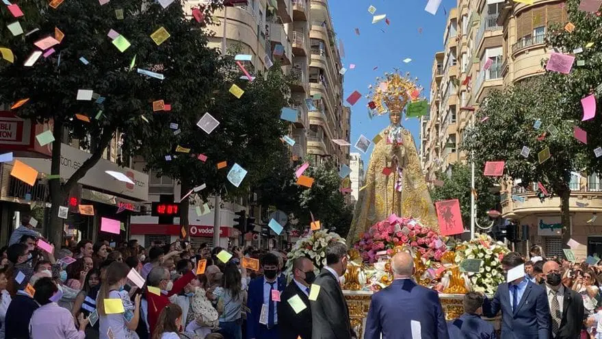 Miles de ilicitanos, ilicitanas y visitantes han tomado las calles y han salido a los balcones para disfrutar de uno de los Domingo de Resurrección más esperados después de que el acto se trasladara a Santa María por la lluvia en 2019, y de que se suspendiera en 2020 y 2021 por la pandemia.