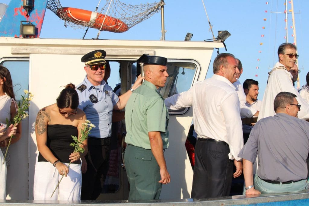 A lo largo del recorrido, muchas autoridades civiles, militares y representantes de la Cofradía de Pescadores, así como diferentes entidades civiles, participaron en el acto, mostrando su apoyo y respeto por esta tradición que simboliza la protección de los marineros y la prosperidad del pueblo, creando un ambiente de solemnidad y alegría que impregnó toda la jornada. Desde el alcalde, Juanjo Berenguer; la concejala de Fiestas y Tradiciones, Marisa Navarro, y representantes de diferentes partidos políticos, la presencia institucional ha sido muy alta.