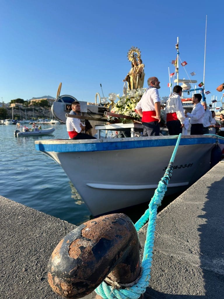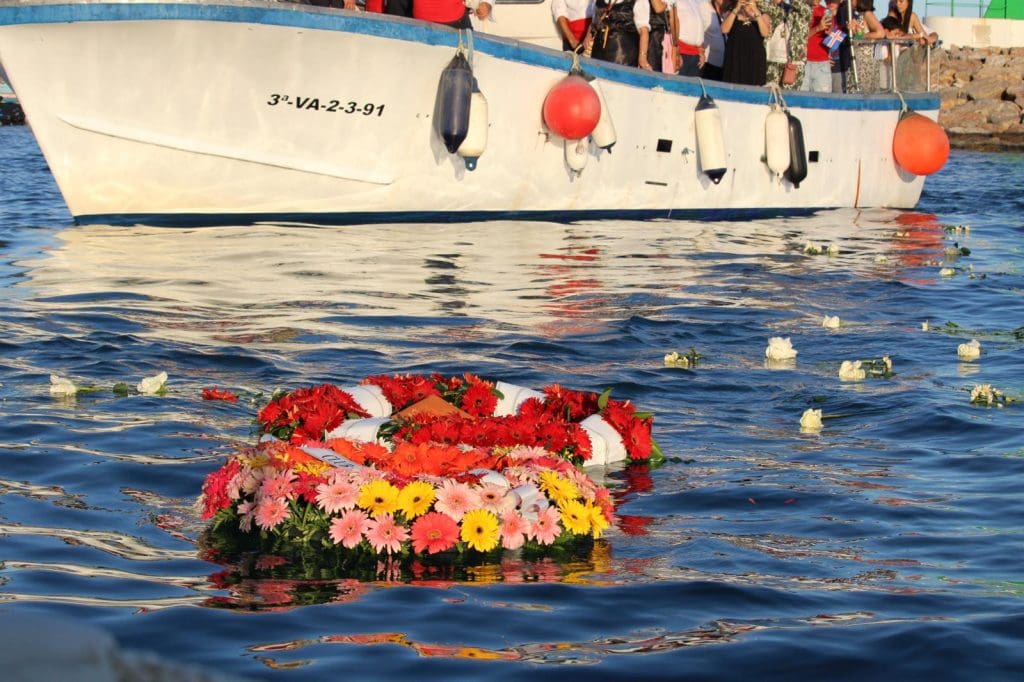 A las 20:00 horas, la imagen de la Virgen del Carmen, patrona de los marineros y protectora de los navegantes, esperaba ya embarcada en el “José Miguel y Joana”, adornado con flores y banderas y listo para recorrer las aguas del mar que tanto significa para el pueblo.