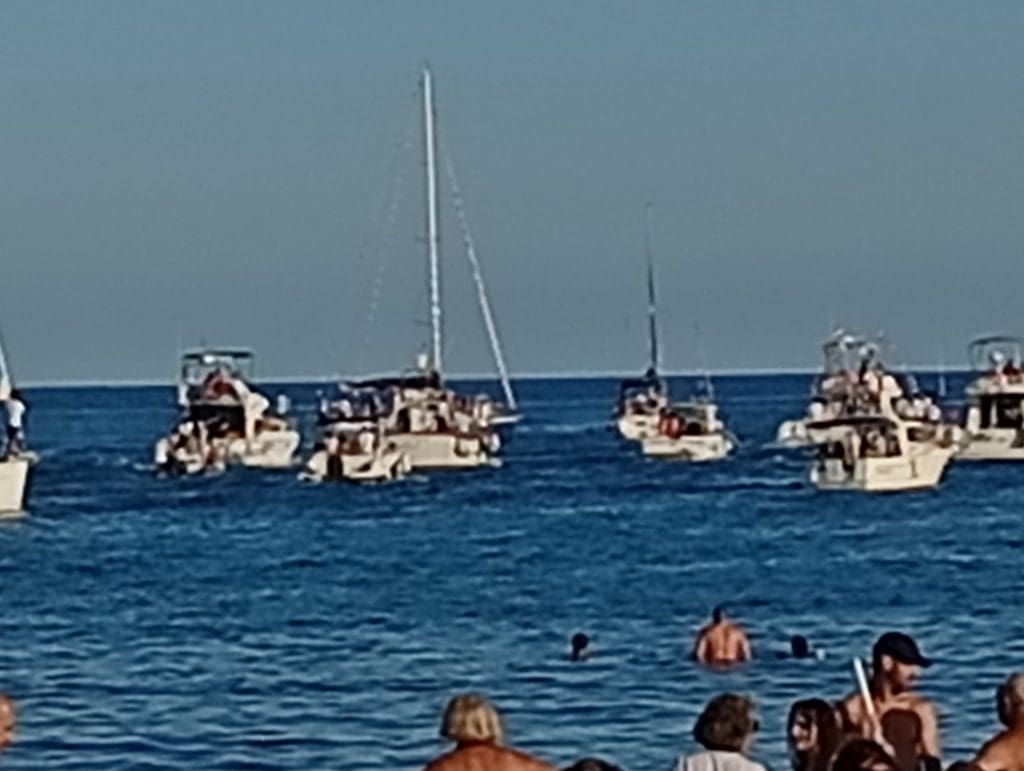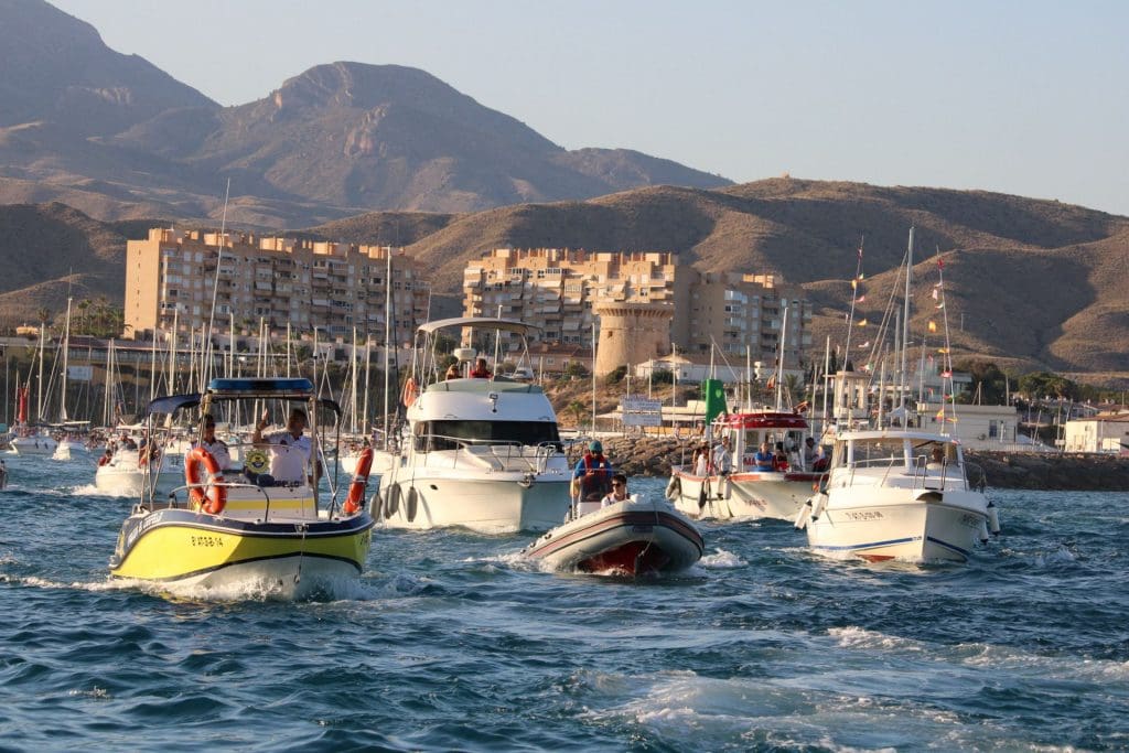 La embarcación, decorada con esmero, partió lentamente desde el puerto, seguida de decenas de barcos de diferentes tamaños y estilos, formando una espectacular flotilla que parecía bailar al ritmo de las olas y la brisa marina.
