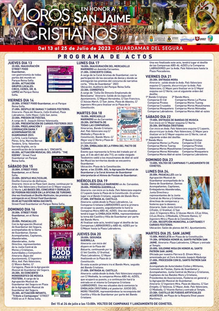A este acto se le unen también los tradicionales desfiles, guerrillas y entraeta de las comparsas de Moros y Cristianos de Guardamar, Los Food Trucks y actuaciones en directo para niños y adultos en el Parque Reina Sofía, el desfile multicolor y el mercadillo marinero en la Avda. Cervantes.