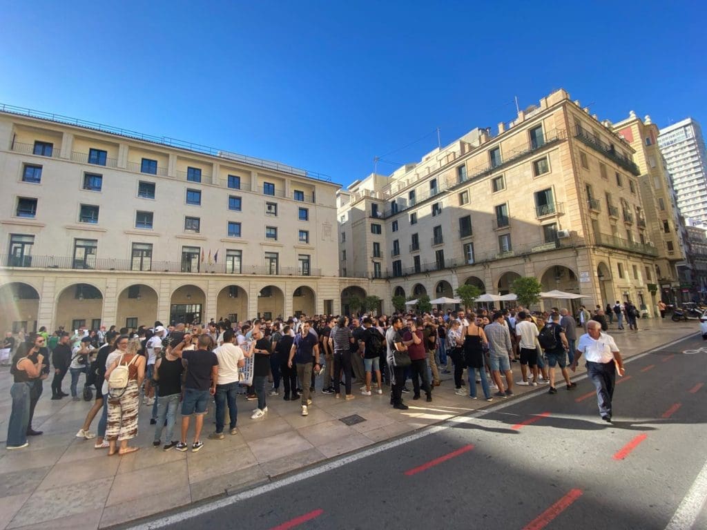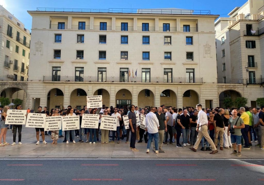 Alrededor de 300 empresarios y trabajadores del sector del ocio y la restauración de Alicante se han congregado hoy pacíficamente frente al Ayuntamiento durante la celebración de pleno municipal. La manifestación, convocada por la Asociación de Locales de Restauración y Ocio de Alicante (ALROA) y las empresas afines del sector, tenía como objetivo expresar su descontento ante las recientes propuestas de reducción de horarios en locales nocturnos.