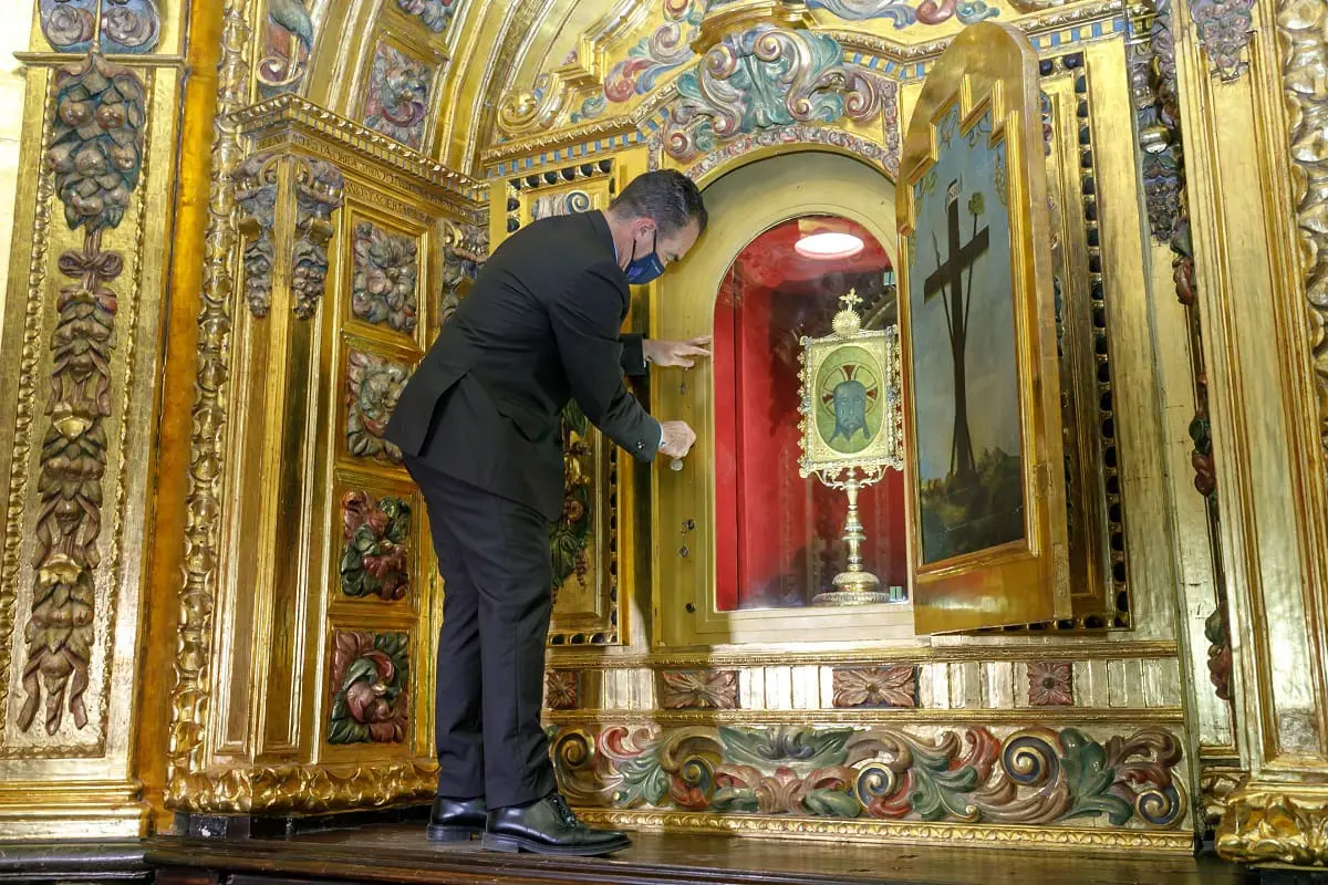 La tradicional Prueba de Llaves que se celebra los días previos a la celebración de la Santa Faz ha transcurrido con total normalidad. El concejal síndico del Ayuntamiento de Alicante, Antonio Peral, ha sido el responsable de comprobar que el torno del tabernáculo donde está situado gira perfectamente y que las luces del camarín han sido renovadas, en sendas iniciativas de la concejalía de Infraestructuras, que dirige José Ramón González. Este acto protocolario data del siglo XVII y se desarrolla en el camarín del monasterio.