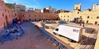 Cierra la puerta principal del Castillo de Santa Pola para el rodaje de la película de Amenábar