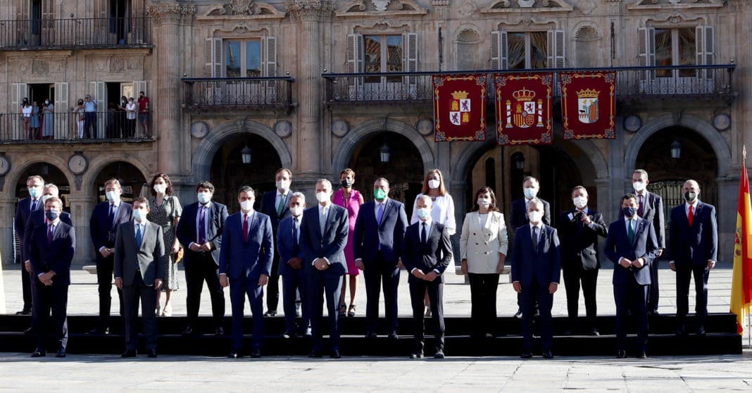 El president ha participado en la cumbre autonómica, celebrada en el Convento de San Esteban de Salamanca con la presencia de Su Majestad el Rey Felipe VI y del presidente del Gobierno, Pedro Sánchez, donde ha centrado su intervención en la defensa de propuestas sanitarias y sociales para hacer frente a los efectos de la pandemia en la población, para profundizar en el Plan de Recuperación, Transformación y Resiliencia y en la Estrategia 2030 frente al Reto Demográfico y para atender mecanismos de compensación a las comunidades que más turistas reciben.