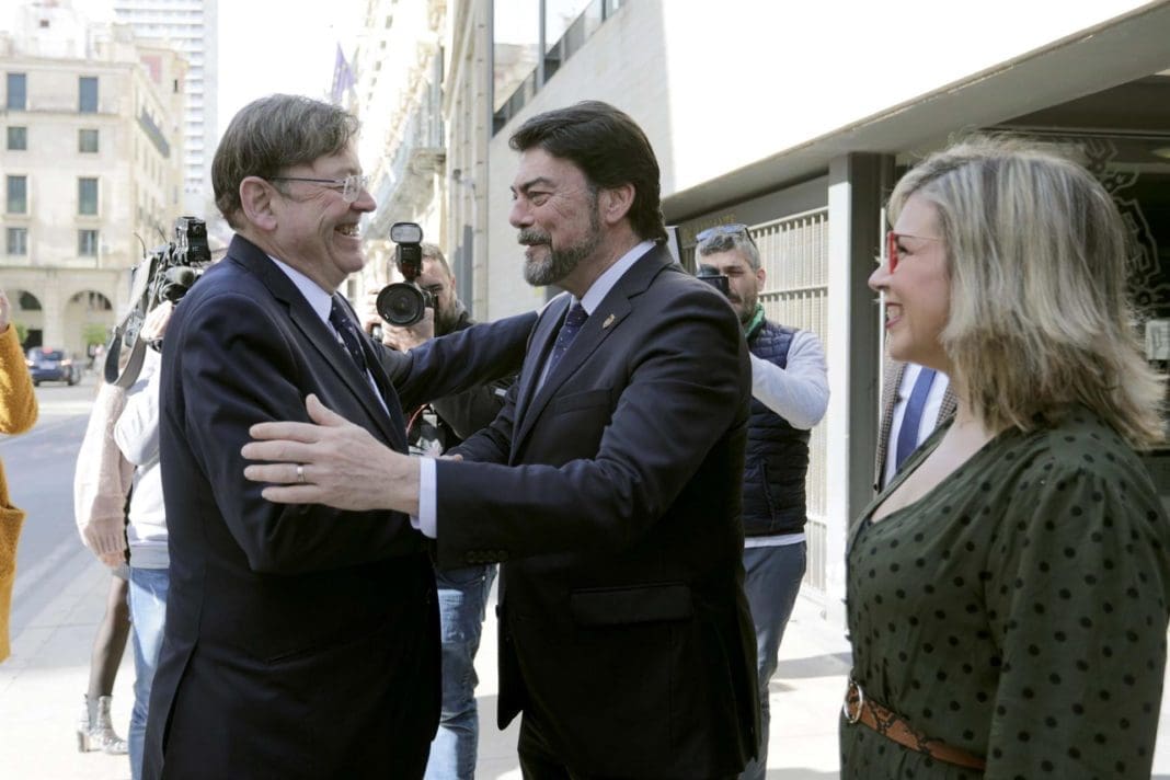 El ‘president’ de la Generalitat, Ximo Puig, y el alcalde de Alicante, Luis Barcala, han acordado, este viernes, en el transcurso de una reunión de trabajo en el Ayuntamiento alicantino la recuperación del Centro de Oficios de Coepa y el estudio para la ampliación del TRAM hacia el barrio de Sant Gabriel, en el sur de la ciudad.