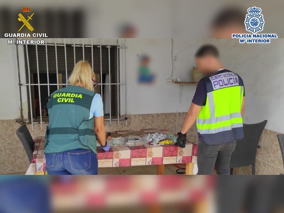 Agentes de la Guardia Civil y la Policía Nacional han detenido en la partida rural Baya Baja de Elche, a dos personas, madre e hijo, acusados de un delito de tráfico de dogas, consiguiendo desarticular en esta operación conjunta un punto negro de venta de droga en esta zona del campo ilicitano.