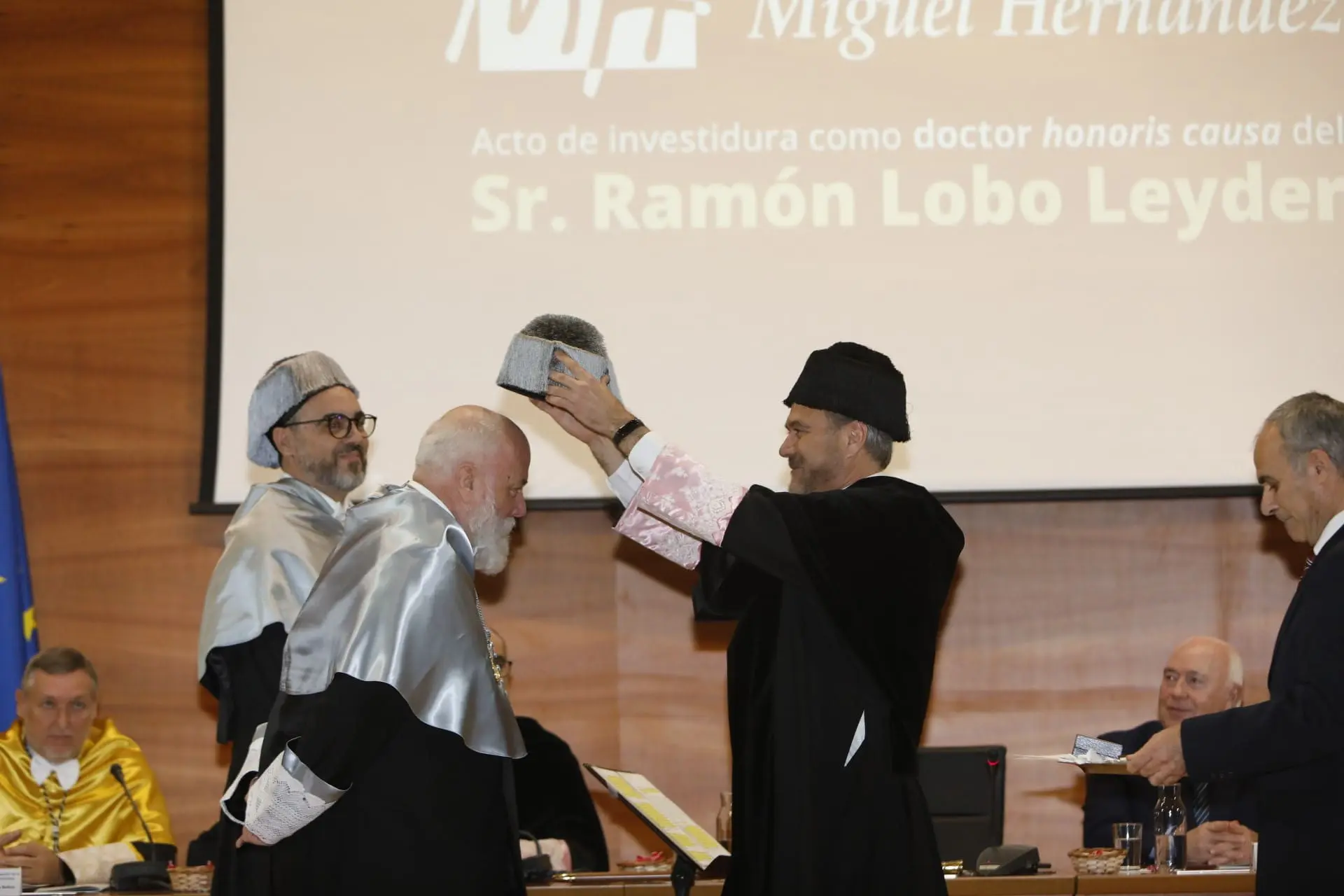 El acto ha estado presidido por el rector de la UMH, Juan José Ruiz; el rector de la Universidad de Alicante, Manuel Palomar; el presidente del Consejo Social de la UMH, Joaquín Pérez Vázquez; el vicerrector de Investigación de la UMH, Domingo Orozco Beltrán; y la secretaria General de la UMH, Mercedes Sánchez Castillo. Asimismo, a la ceremonia han asistido, entre otros, el alcalde de Elche, Carlos González, y la directora General de Universidades, Pilar Ezpeleta.